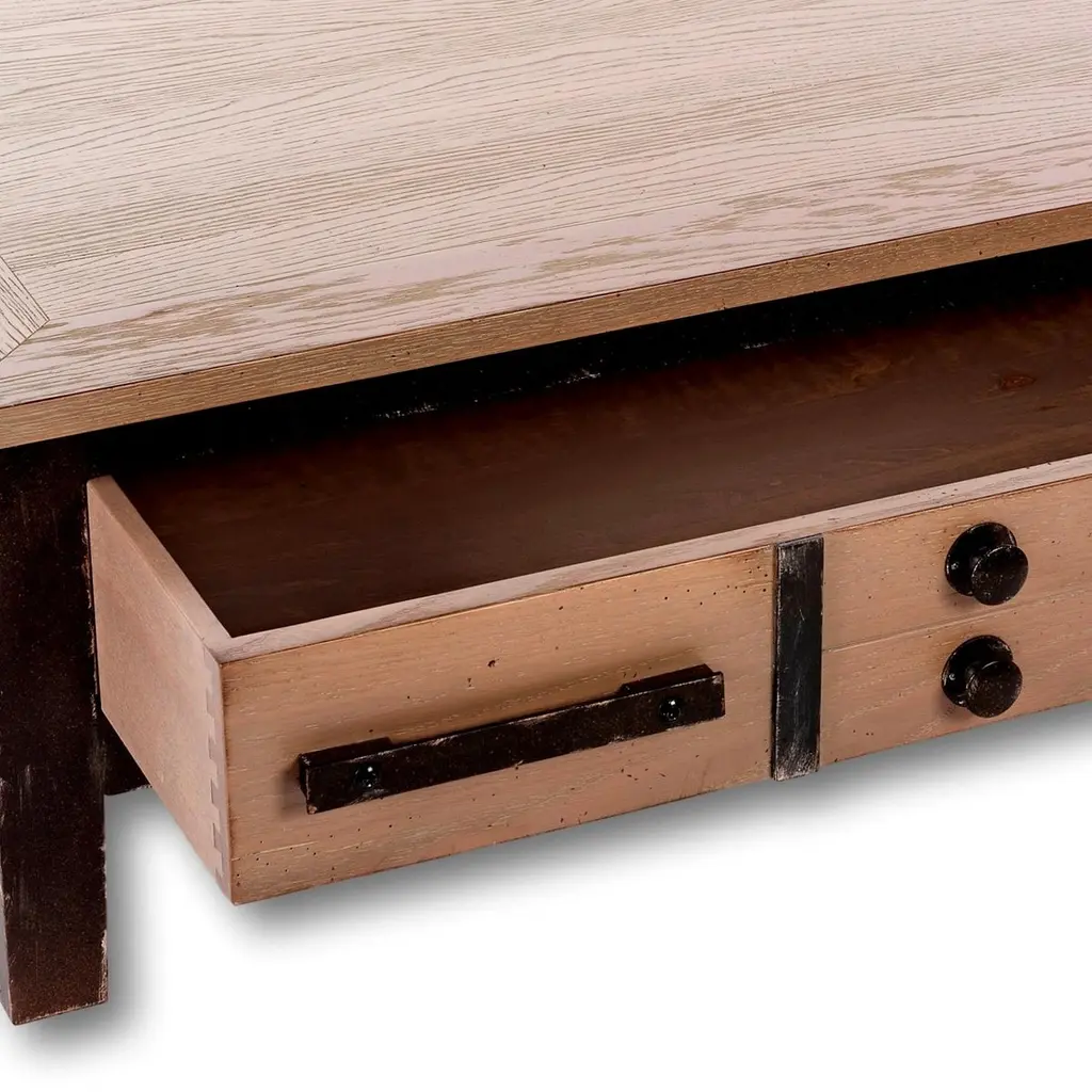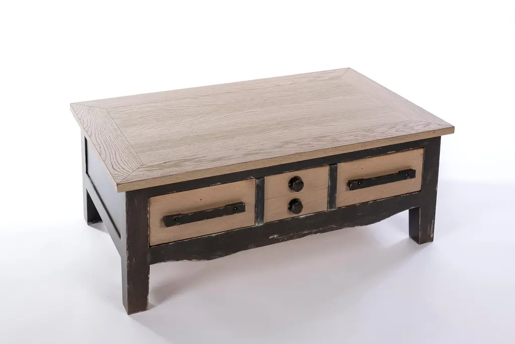 This coffee table from a French Countryside style is reinvented with dark colors and a unique finishing as an imitation gun metal to present an Industrial Style. The table features one large back and forth drawer in oak. The sourcing of the solid wood comes from sustainably managed French forests.GONTIER, a brand of MON PETIT MEUBLE FRANCAIS group, provides you exclusively with 100% made in France classical and contemporary pieces of furniture.The manufacture of each furniture is made accordingly to traditional French techniques of woodworking by small craft workshops in the western countryside of France (Loire Valley and Bretagne). We offer a 5 year warranty on each piece.