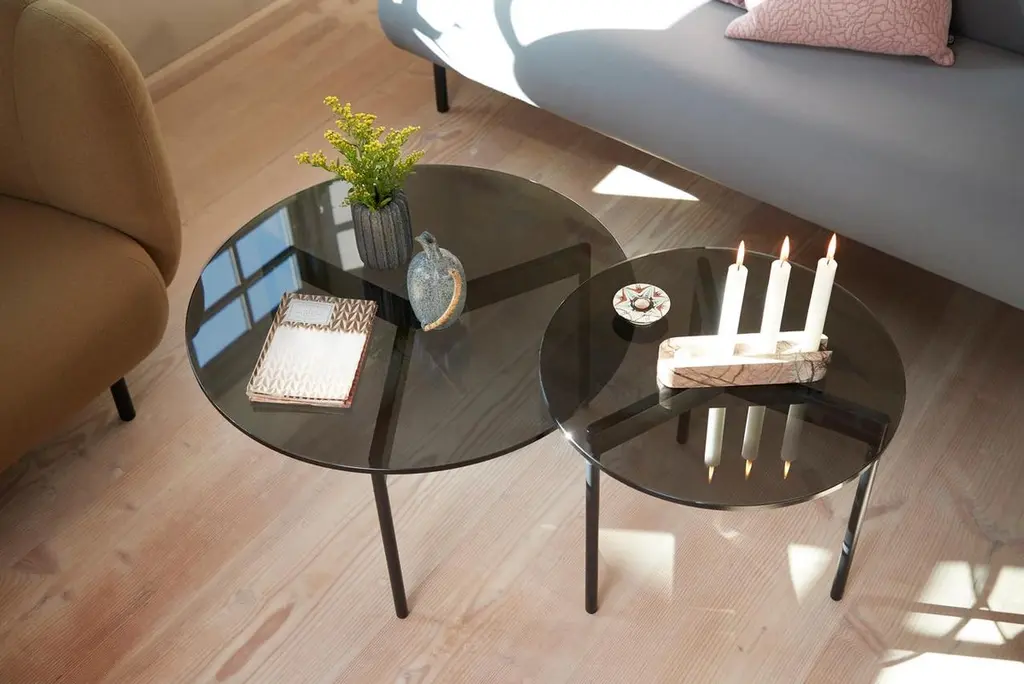 From Above Coffee Table Smoke Grey Glass Ocean Blue By Warm Nordic