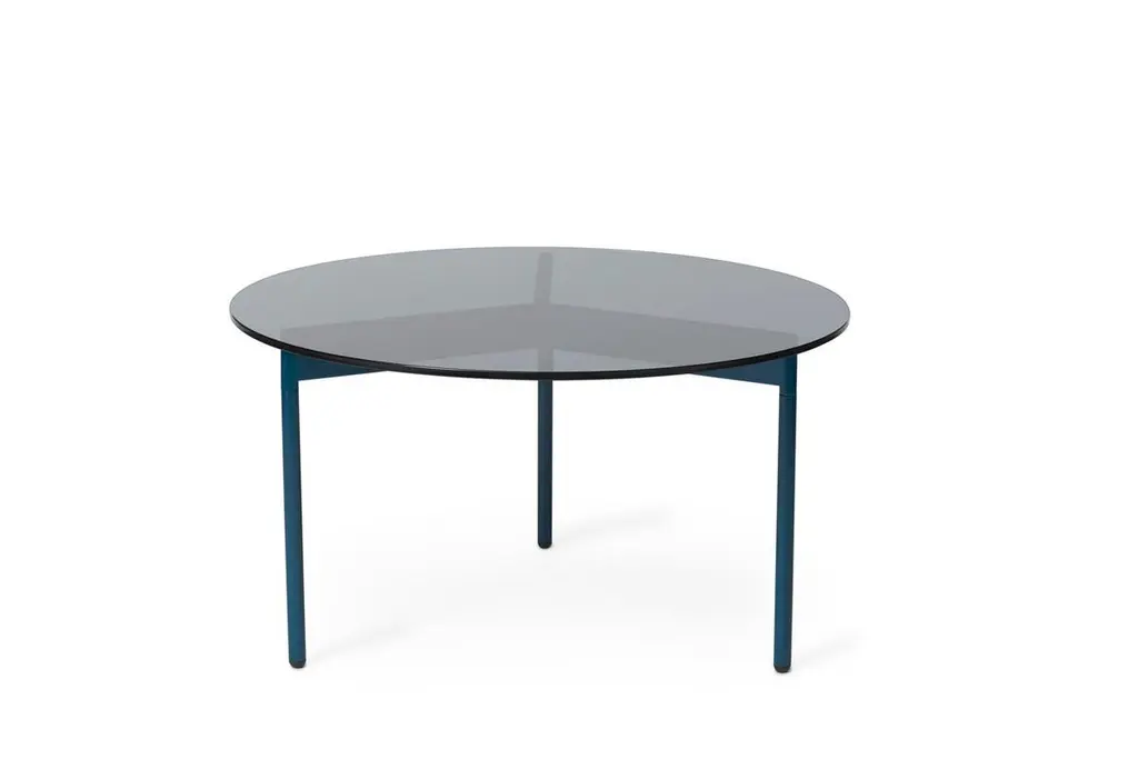 From Above Coffee Table Smoke Grey Glass Ocean Blue by Warm NordicDimensions: D72 x H37 cmMaterial: Tempered glass top, Powder coated steel legs.Weight: 10 kgAlso available in different finishes and dimensions.A light, elegant coffee table with a glass top and coloured steel frame. The transparent glass top of the From Above table sets off the structure beautifully, investing the coffee table with a handsome, graphic look. With its simple, yet powerful idiom, the From Above coffee table is an excellent complement to fabrics, rugs and Nordic woods, but would also make a great feature in any simpler décor where the emphasis is on detail. Everything about the structure of the From Above Table is well conceived, from the beautiful encounter between the legs and the table frame to the three elegant equilateral triangles that are revealed when the glass table is viewed from above. The smoke-coloured glass harks back to the past.Warm Nordic is an ambitious design brand anchored in Nordic design history and with a timeless, aesthetic style that inspires you to appreciate the little things in life. The company is the result of several years’ intense work on developing a new design brand with design history, quality and personality at its core. Warm Nordic boasts a colourful and charming universe of furniture, lamps and accessories full of personality. Our designs encapsulate the Nordic spirit, which in its essence is timeless, inclusive and warm.