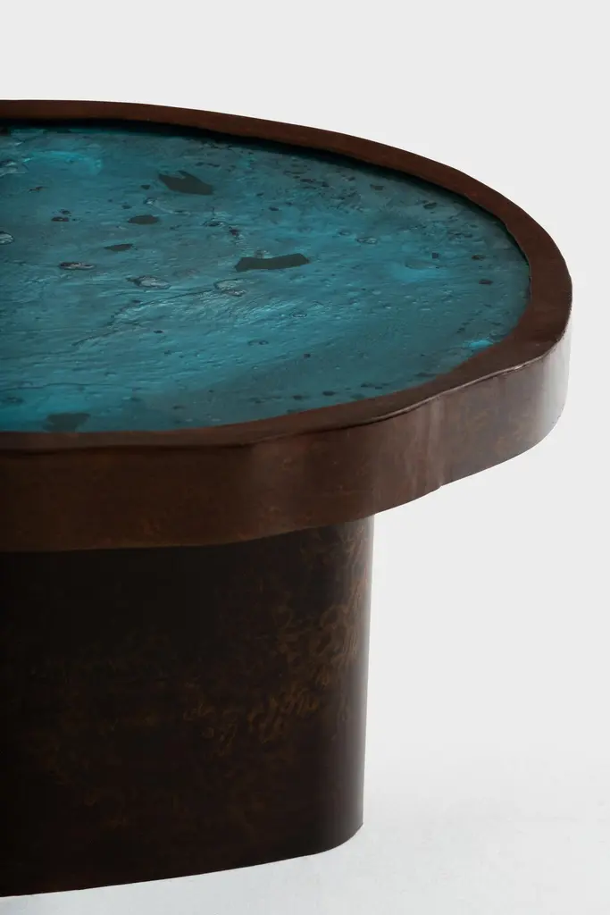 Fuili Coffee Table In Blue Resin And Corten Steel By Bam Design