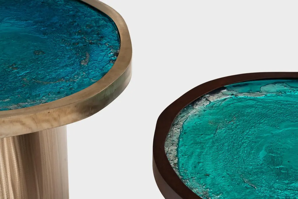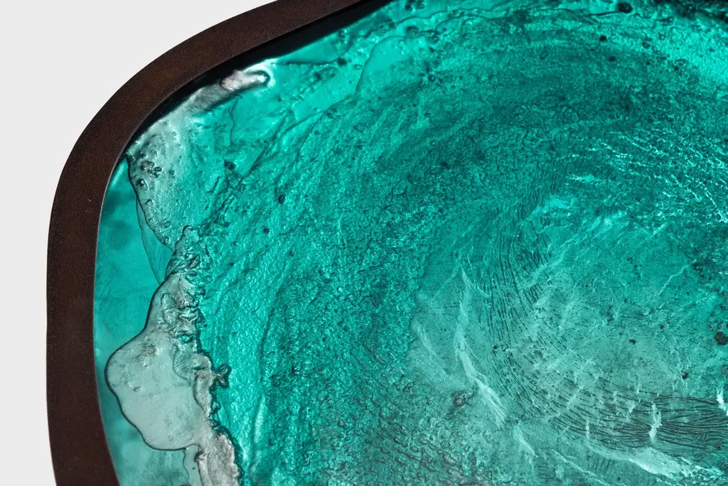 Fuili is part of Mare collection, wich was born from a fusion of crystallized metal, “fizzed” by the epoxy resin, with a highly artisanal use of color. Its blue, emerald and white nuances have been reproduced by playing with the deep effects obtained based on the intensity of the color in a given point. A way to always carry with you the suggestive beauty and natural imperfection of the Sardinian sea, reinterpreted with our expressive language: a landscape that we Sardinians take for granted because we see and live it continuously, but full of stories, memories and emotions.Fuili and Mare collection was part of Be Yourself to Shine. The exhibition, set in an 18th-century palace in the heart of Turin, merges historic architecture with contemporary design, creating a unique sensory journey. It showcases one-of-a-kind pieces and installations resulting from collaborations with young Italian artists and designers, exploring the relationship between art, materials, and emotion. Each work is conceived to integrate with the spaces, generating a dialogue between the past and the present. The exhibition also offers a reflection on the boundary between art and design, with pieces that transform everyday objects into artistic and sensory experiences.Open edition. Standard production time is approximately 8–9 weeks once current stock is sold out.One piece available for immediate delivery. For projects involving multiple units, production time may vary.