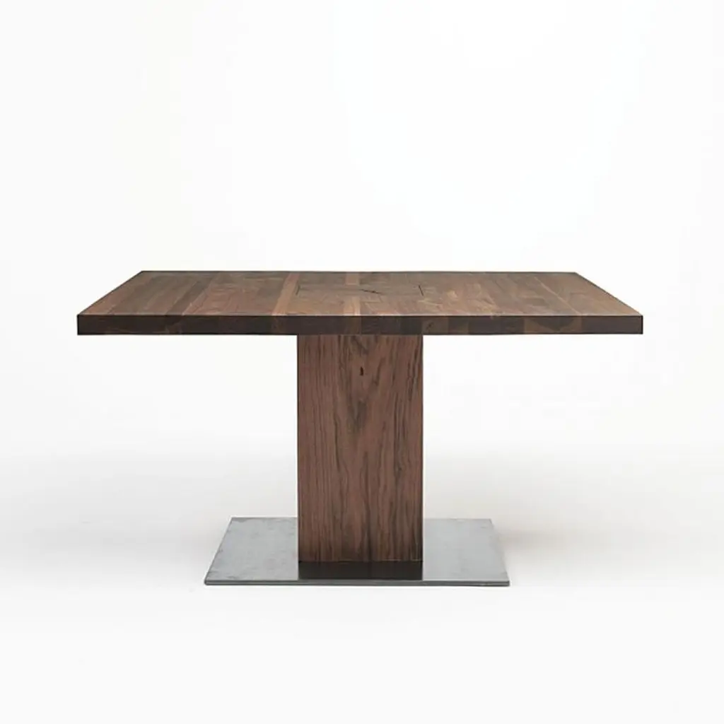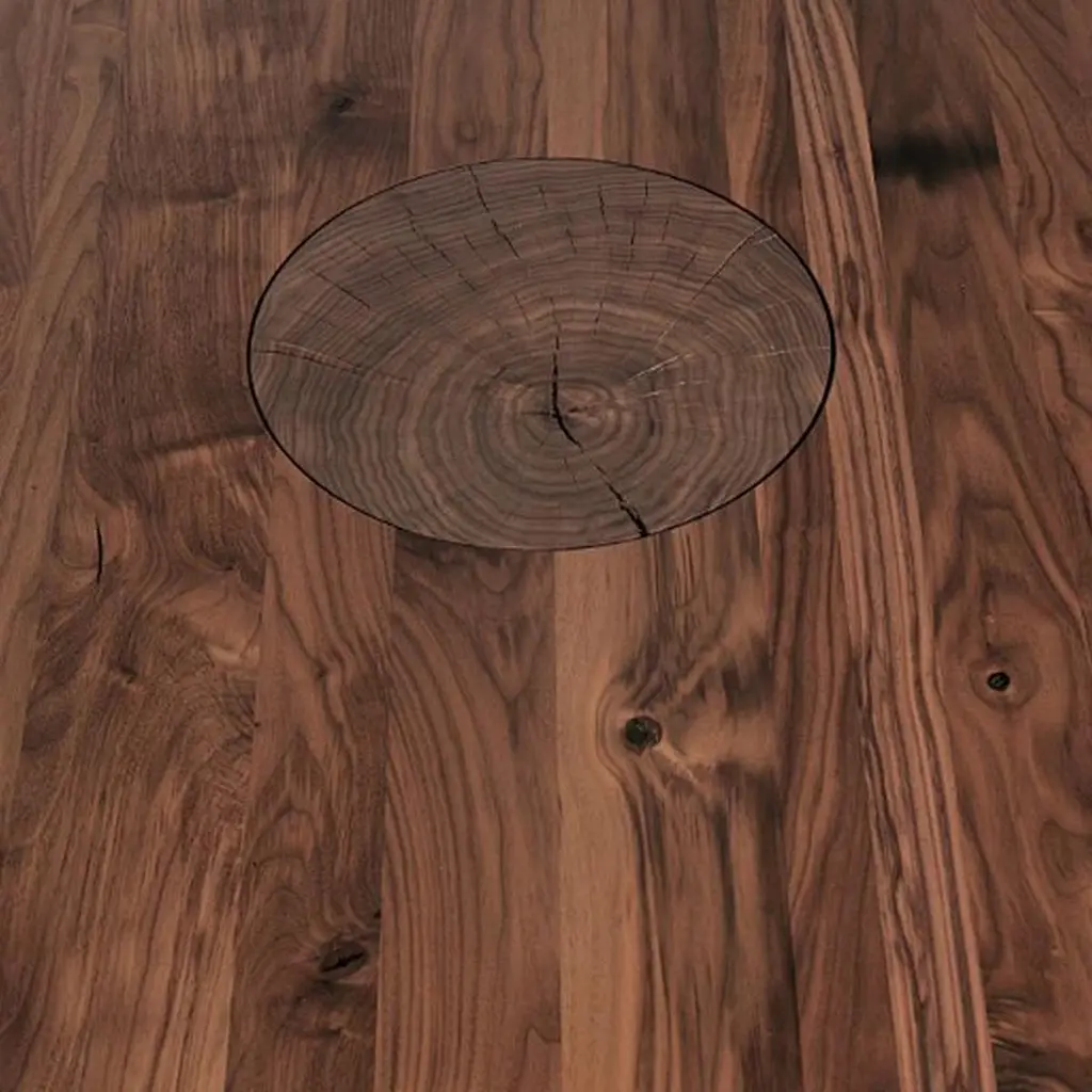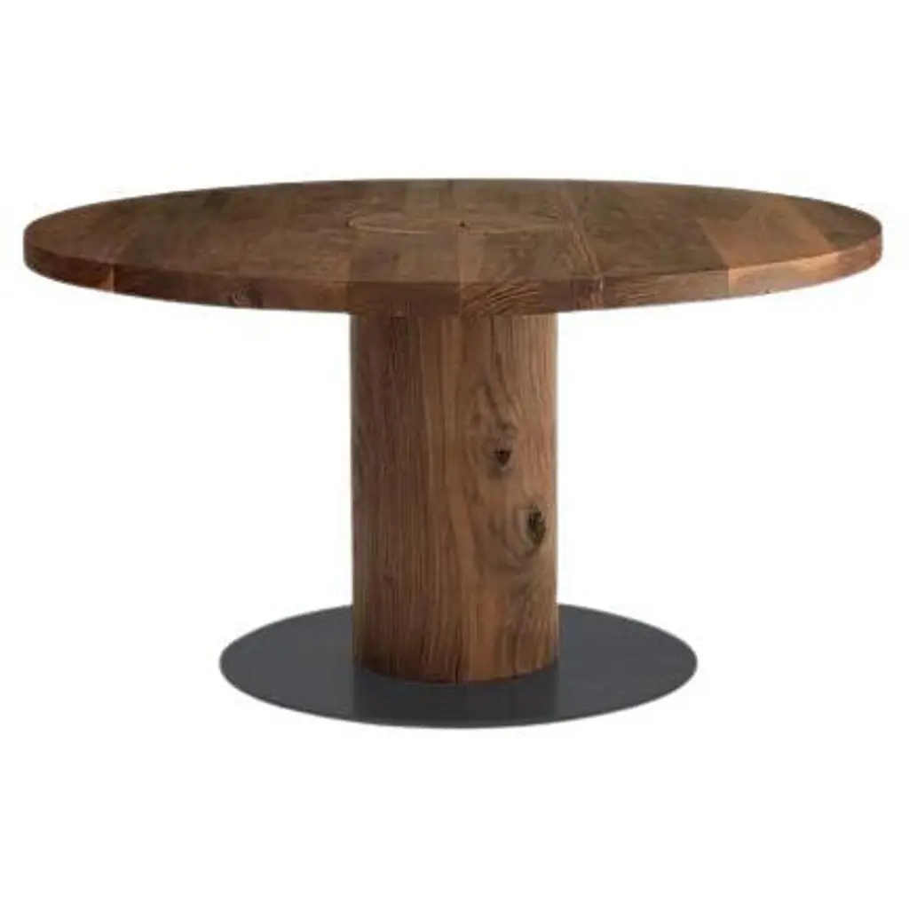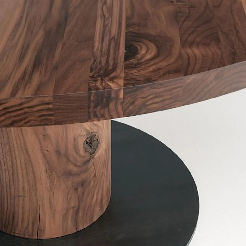Round or Square Table or Coffee Table Full Wood in solid walnut wood with leg joining visible from the surface of the top. Top is 5cm thickness. On iron base with oiled finish. Wood treatment with natural wax of vegetable origin with pine extracts. Available in:Diameter 120cm, price: 11900,00€Diameter 140cm, price: 12900,00€Diameter 160cm, price: 13900,00€Also available in Square shape, on request.