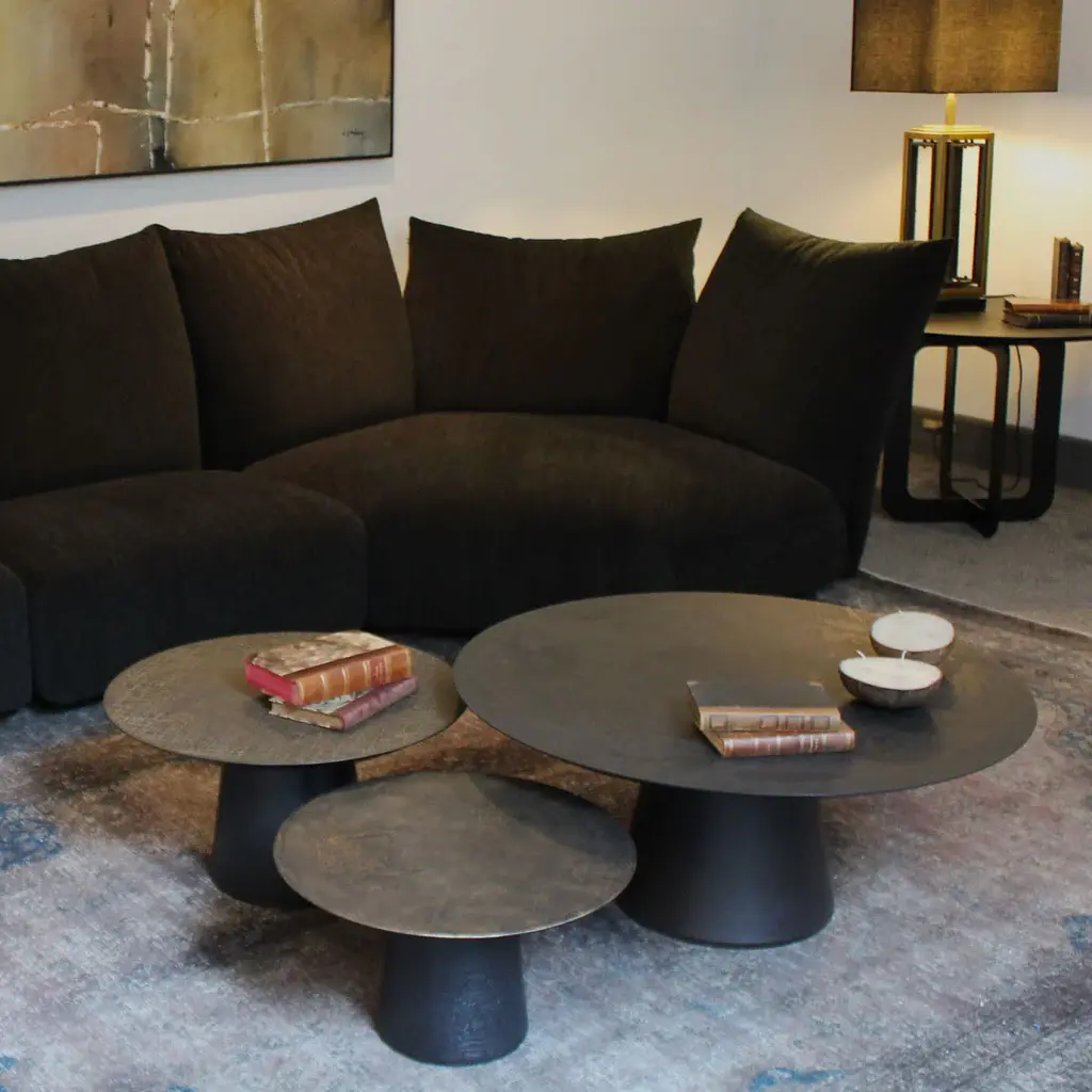 Fungo Large Round Coffee Table With Bronze Decorated Resin Top
