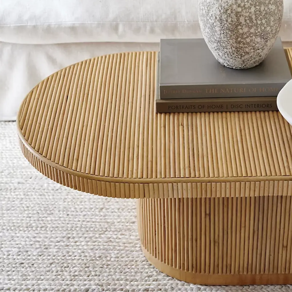 The Gabriella Coffee Table from Woven pays homage to Milanese designer Gabriella Crespi's fusion of natural elements with clean lines. Crafted from sustainably harvested Indonesian pencil pole rattan, the table's distinctive form invites creative styling. The generous surface welcomes art books and travel mementos, while wood accents add refined detail. This piece draws from global influences while maintaining a modern sensibility. The Gabriella Coffee Table's proportions make it an ideal centerpiece for living spaces.