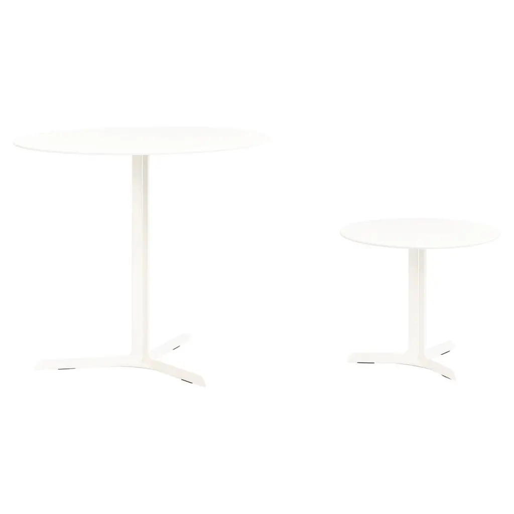 Garden is a stylish outdoor table, with a distinct design and elegant look. The HPL top and metal base are painted to suit outdoor environments. The table, available in three sizes, can be completely dismantled and easily transported. Matched with the new New York Soleil collection, it creates an oasis of comfort, ideal for outdoor use.Additional information:Material: Metal, HPL Base: Metal Top: HPL Finish: Matt whiteDimensions: Ø 42 x 49 H cmAvailable in other finish options: Matt blackAvailable in other shape options: LargeAvailable in other structural options
