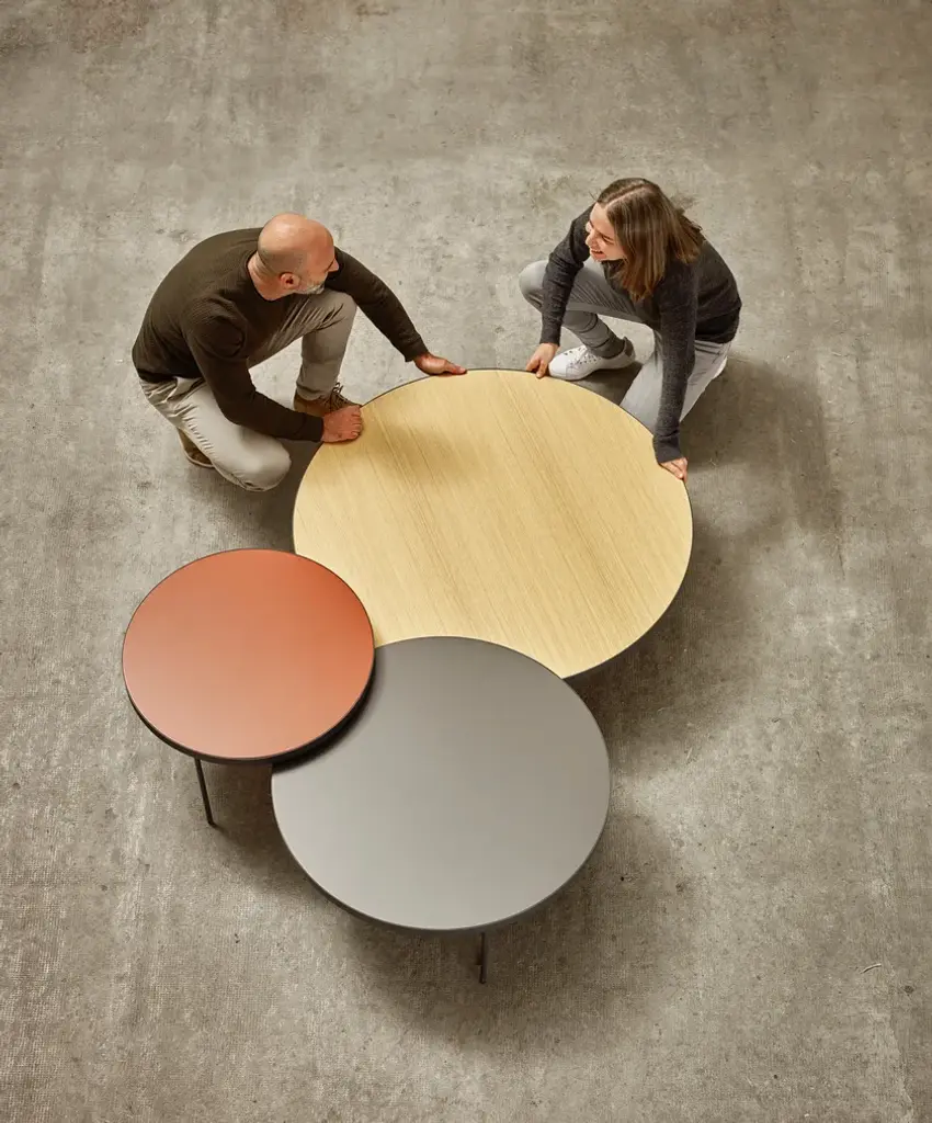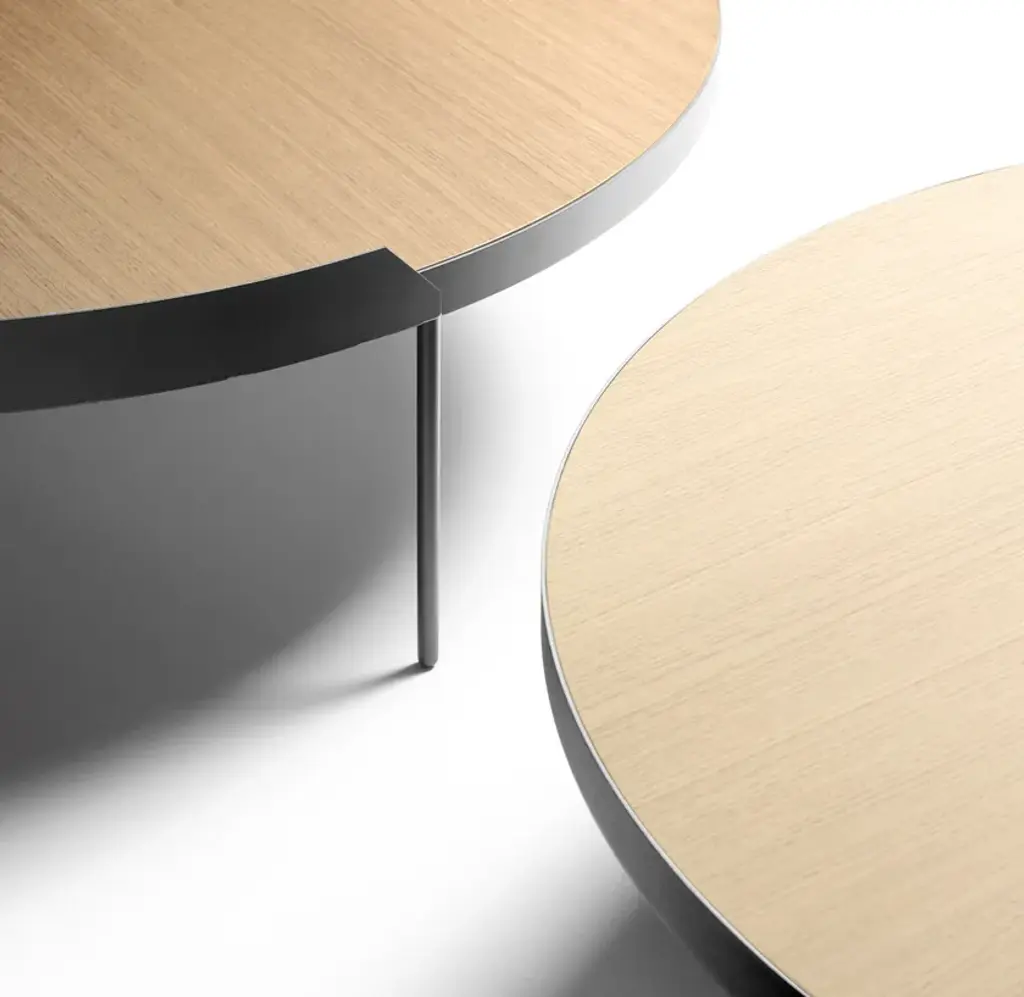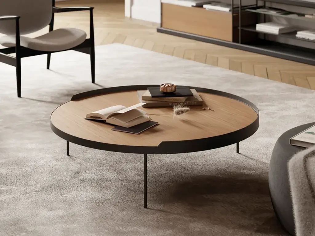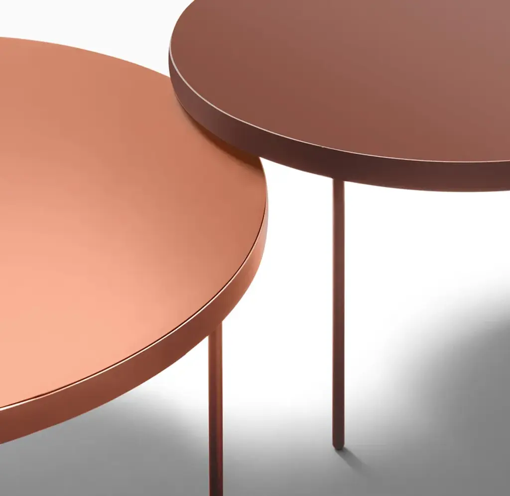 Gau is a simple yet elegant circular centre table. The famous phrase by Mies van der Rohe comes to mind: less is more. The table is available in various dimensions and finishes which can be combined to create a personal and unique result.The slender cylindrical legs contrast with the robust ring that surrounds the tabletop and finishes off the piece.