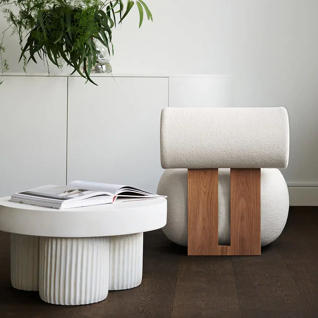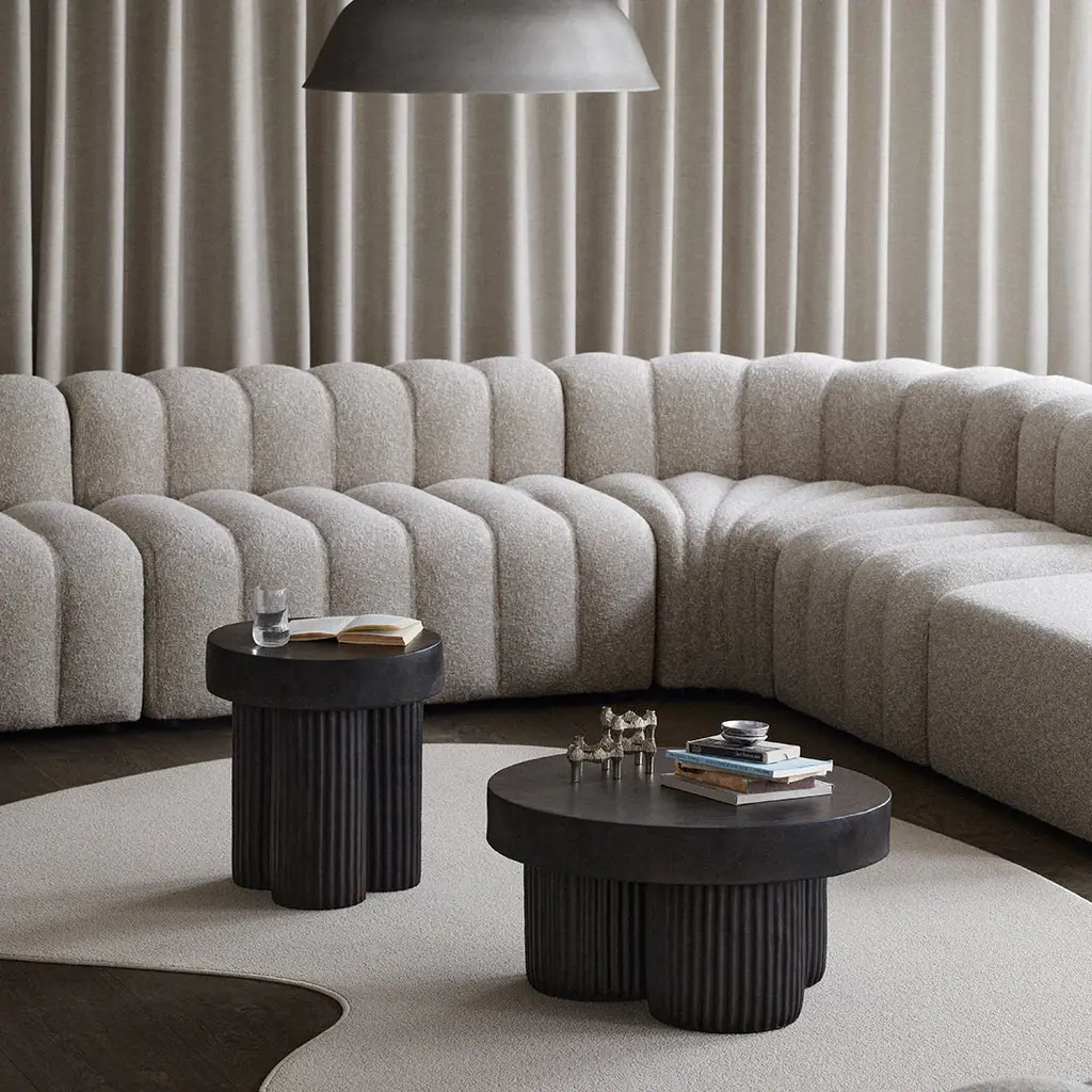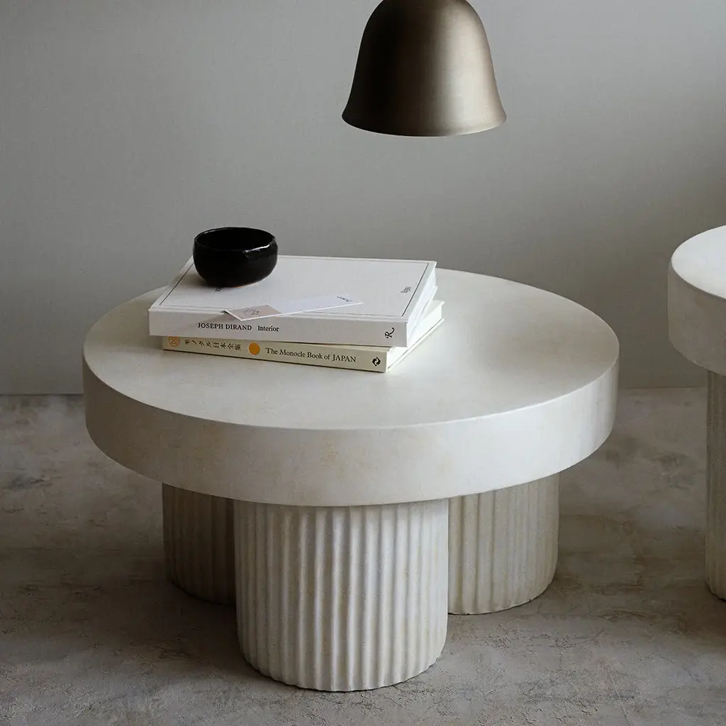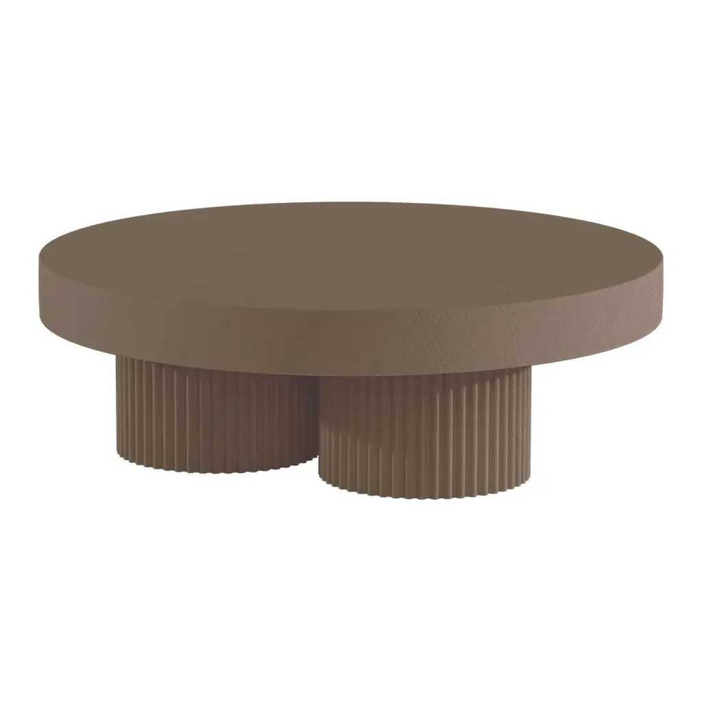 Please note: the table top and base are not attached Gear is a collection of sculptural coffee tables, inspired by Ancient Greek columns. Gear is designed as a simplified block-like structure with three riffled legs, adding a refined detail to the voluminous design. The table is hand painted, adding a unique surface texture to each table.