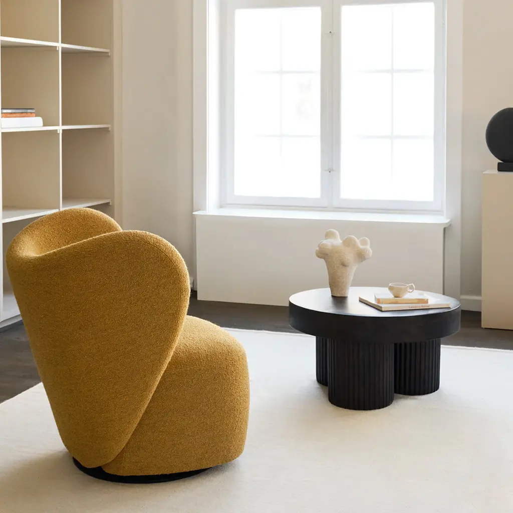 Please note: the table top and base are not attached Gear is a collection of sculptural coffee tables, inspired by Ancient Greek columns. Gear is designed as a simplified block-like structure with three riffled legs, adding a refined detail to the voluminous design. The table is hand painted, adding a unique surface texture to each table.