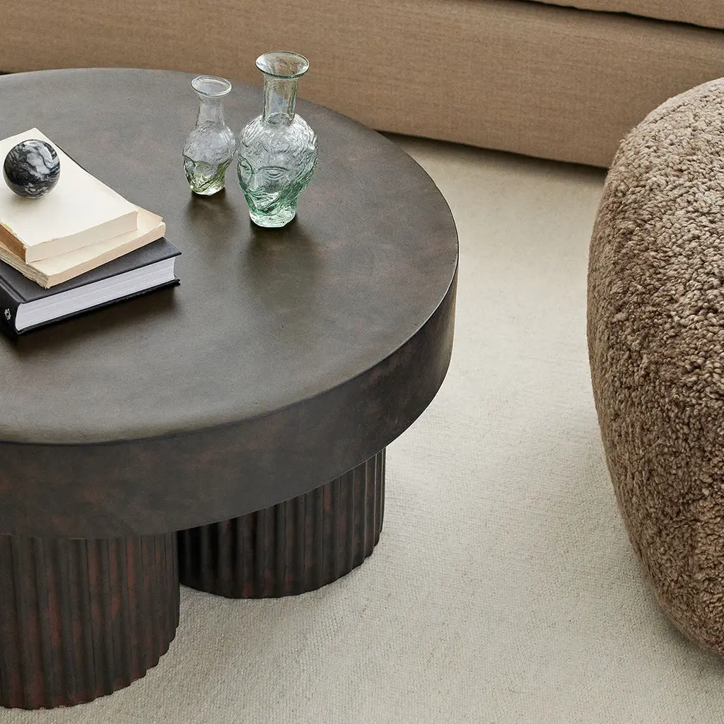Please note: the table top and base are not attached Gear is a collection of sculptural coffee tables, inspired by Ancient Greek columns. Gear is designed as a simplified block-like structure with three riffled legs, adding a refined detail to the voluminous design. The table is hand painted, adding a unique surface texture to each table.
