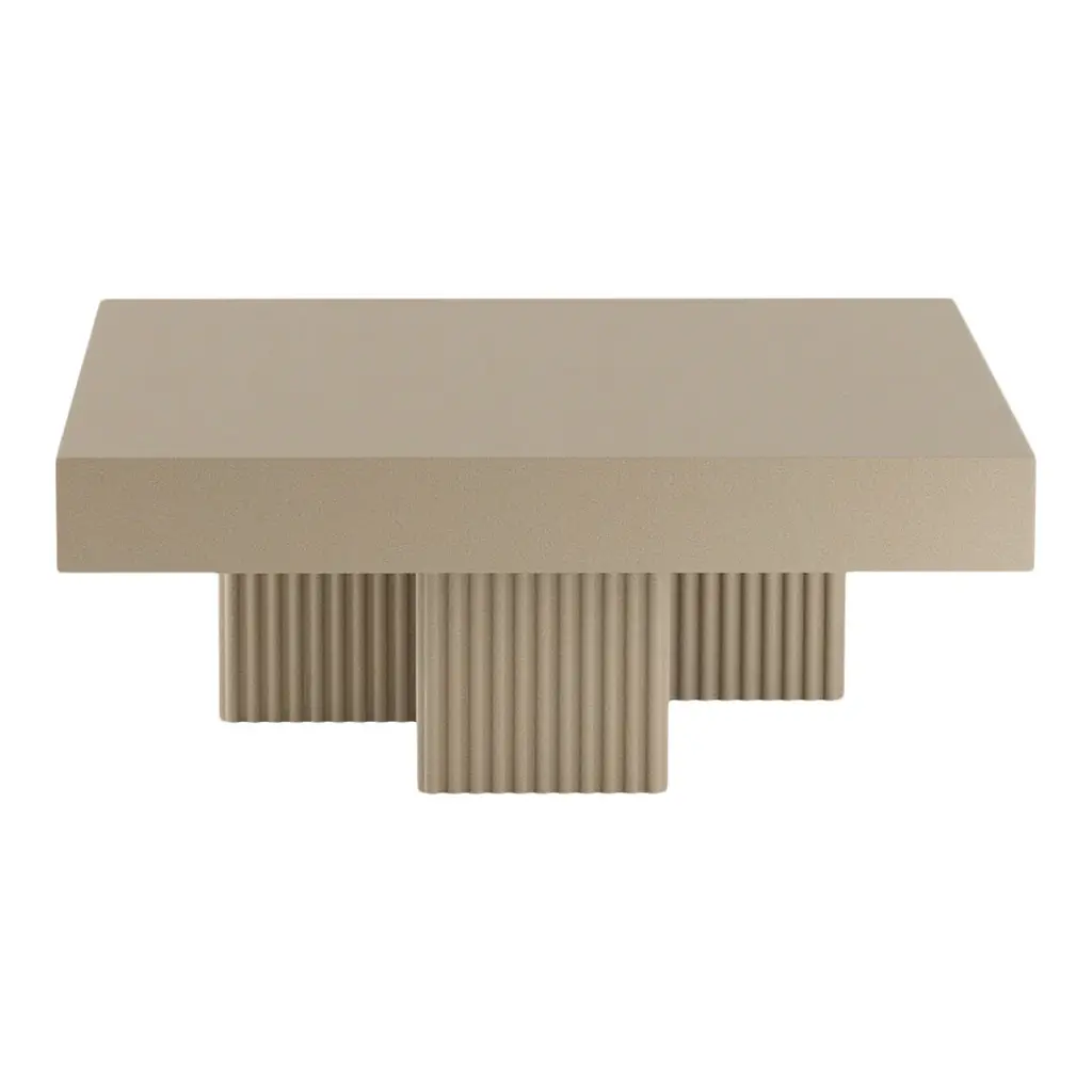 Gear is inspired by Brutalism Architecture from the mid-20th century. The sculptural coffee and side tables are designed as block-like structures, reflecting architectural building components of concrete. The Gear Square tables come with a square tabletop, resting on top of three cylinder shaped legs. The legs are characterized by a fluted detail, adding a refined and organic signature to the design. The Gear coffee table is cast in lightweight fiber concrete with a unique and tactile surface texture. Surface can be slightly uneven and the color may vary little due to its unique texture Adds a sculptural and organic detail to any interior space Sturdy three legged base Please note: The table top and base are not attached