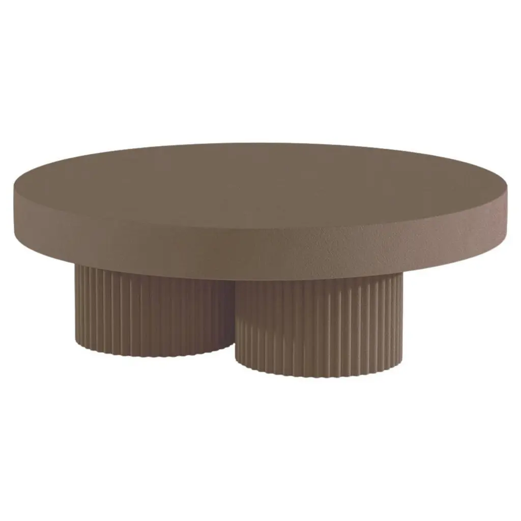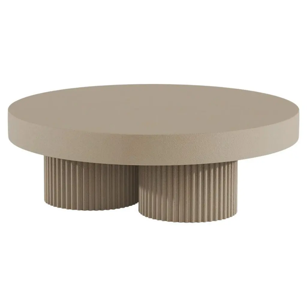 Gear Tablesby Kristian Sofus Hansen & Tommy HyldahlGear is a collection of sculptural coffee tables, inspired by Ancient Greek columns. Gear is designed as a simplified block-like structure with three riffled legs, adding a refined detail to the voluminous design.Gear comes in two sizes and is made of cast fiber concrete. The table is hand painted, adding a unique surface texture to each table.Finish: Earth, Chalk, Chai, Clay, Red or TerracottaThe table is made from a blend of concrete and magnesium oxide. Pads for table legs included.