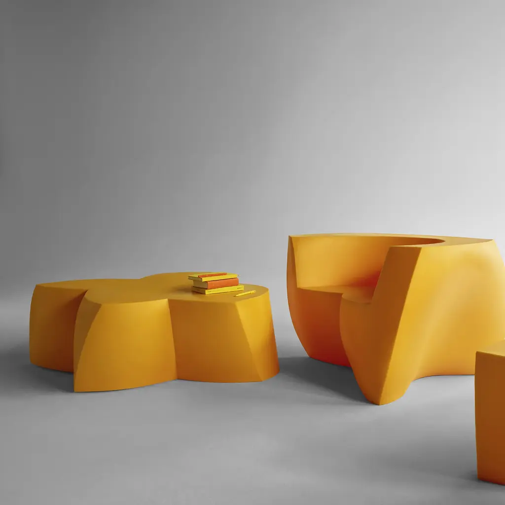 A bold and sculptural table option for contemporary living and commercial spaces, the Gehry Coffee Table from Heller brings a dynamic surface to any indoor or outdoor living space. A truly multifunctional design, this piece can be used as a modern bench or convenient foot rest as well as a playful coffee table. Highlights