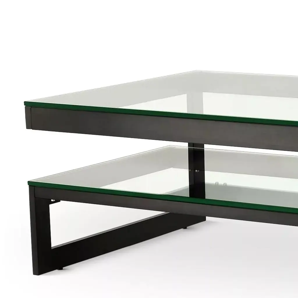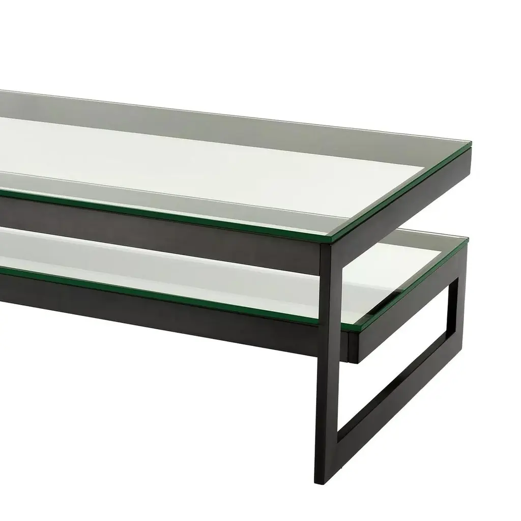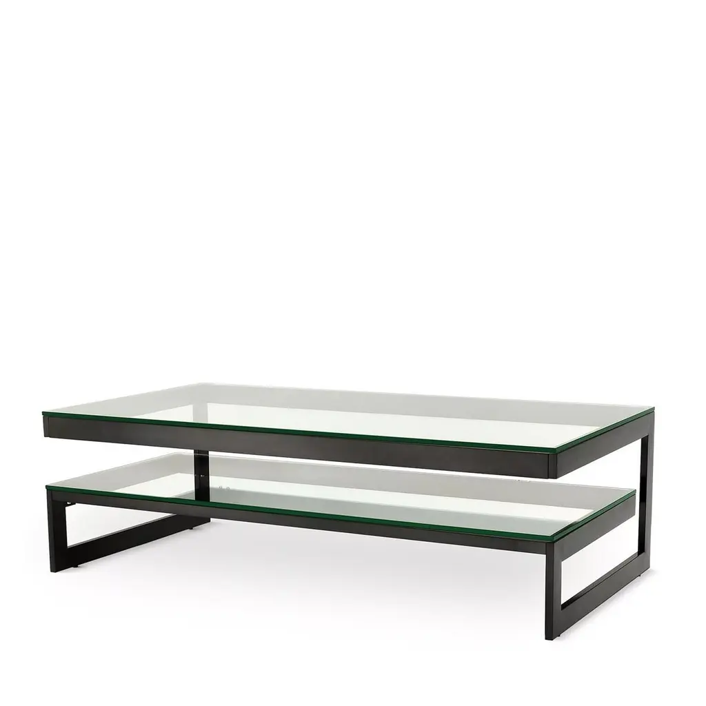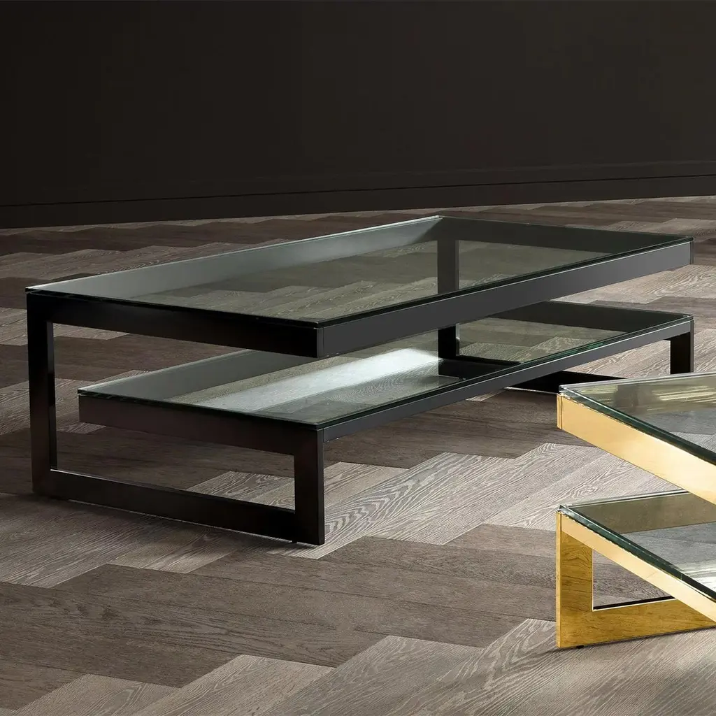 Coffee Table Gema with structure in stainless steel in bronze finish. With 2 clear glass tops.