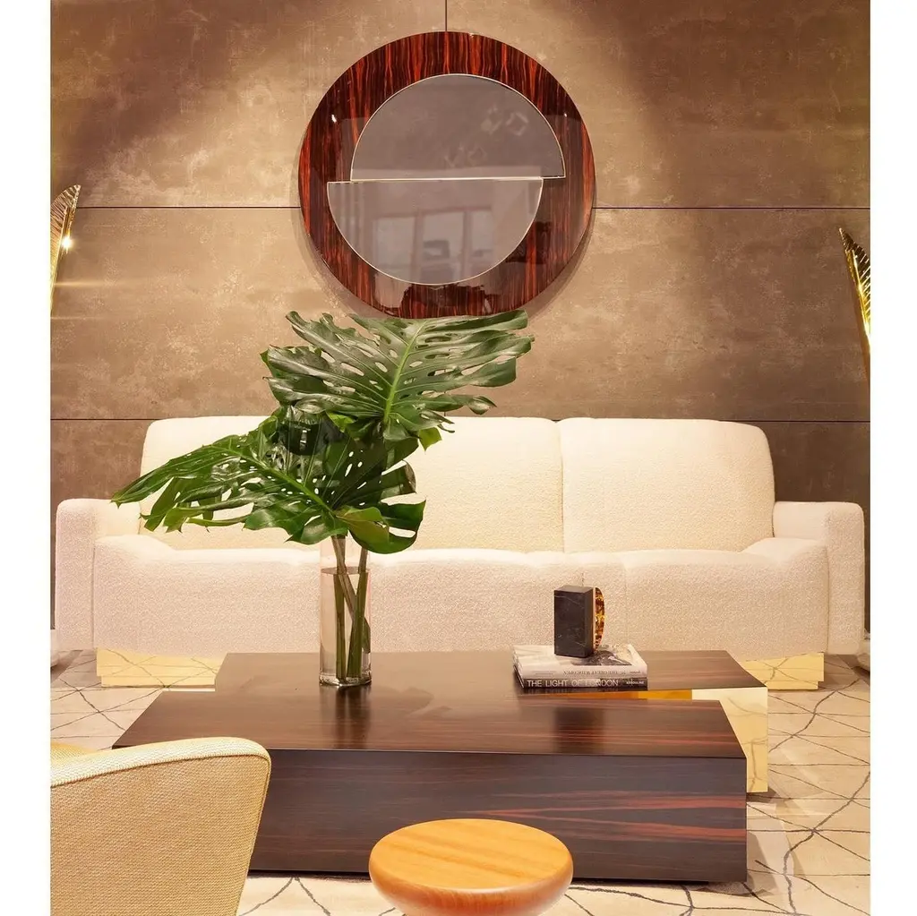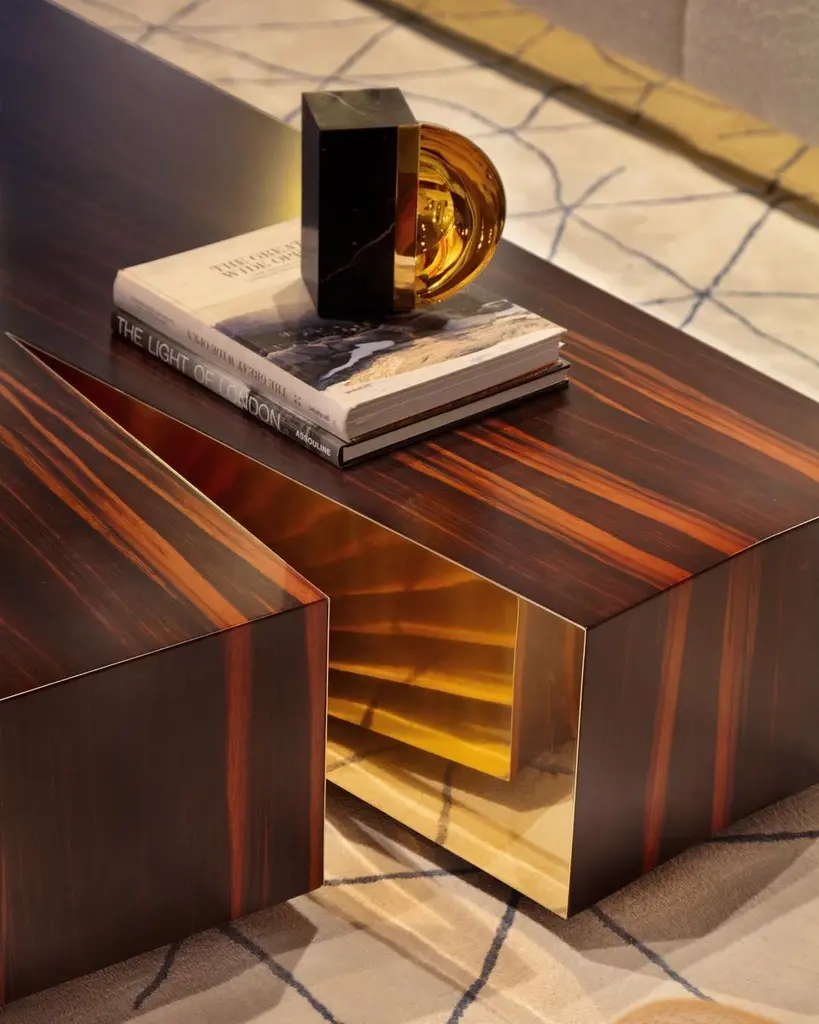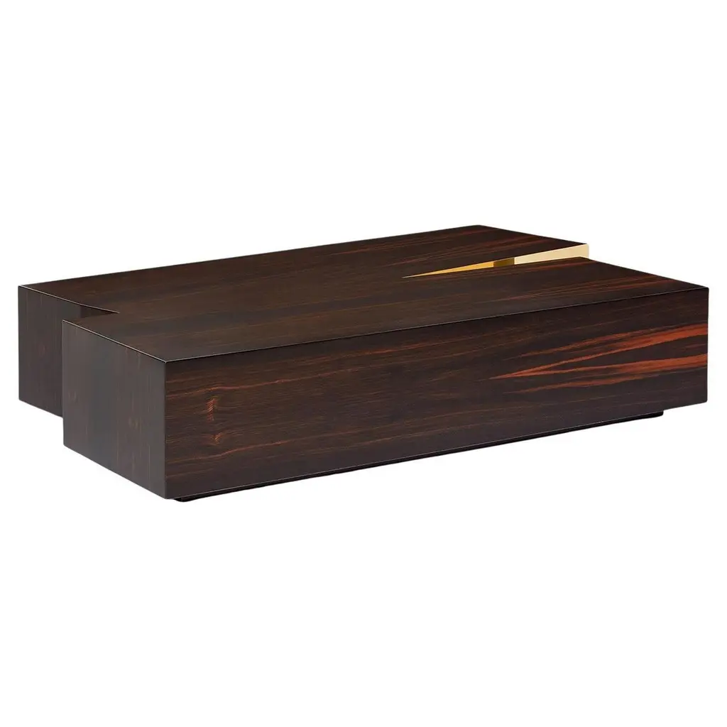 This coffee table is designed to become a central territory in any living space. From the intersection of geometric shapes, a plain arises from the ground.Top: Bird Eye, Artic Bird Eye, American Walnut, Ebony, Amara Ebony or Olive Ash wood veneer with matt or gloss finishing.Metal detail: Brass, Nickel or Copper in polished, brushed or antique finishing.Size can be customized to fit your space perfectly.We do our best to expedite production and to ship and deliver product within the listed lead time, however current lead times might be longer due to global shipping backlog and delays. These delays are out of our control and cannot be a reason to cancel an order.