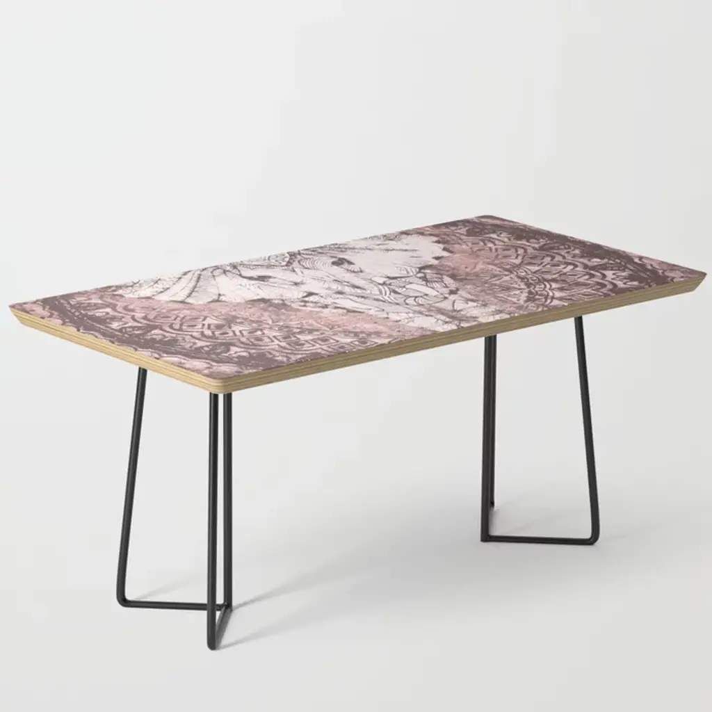 This table features a metal structure with a top covered in Prestige Rose Gold paper with the Daisy pattern. The surface is transformed into a decorative canvas with a rich and captivating appearance that catches the eye, adding an elegant and unique touch to any space.