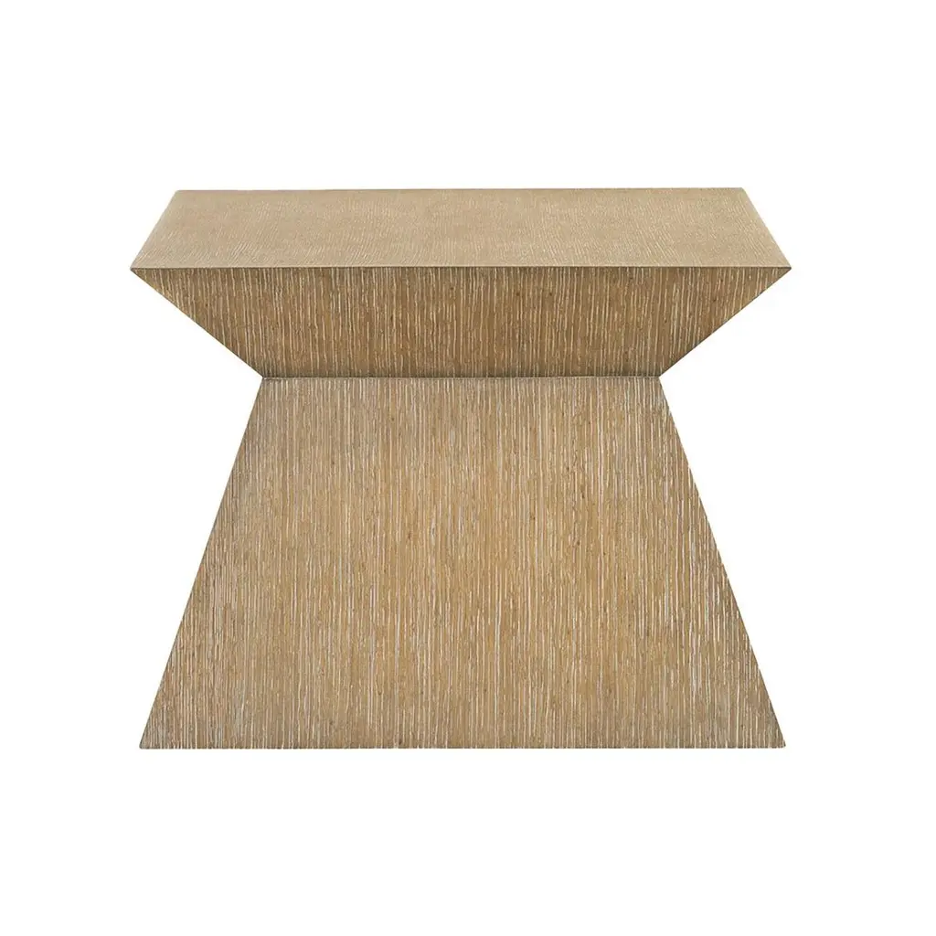 This pedestal coffee table set brings architectural boldness and natural texture to the center of your space. Sold as a pair, these sculptural tables feature an angular, faceted silhouette that creates striking visual symmetry when placed together. Each table is crafted with a cerused wood finish that accentuates the grain with subtle depth and organic appeal.Whether styled side-by-side as a coffee table or separated for versatile function, this set delivers contemporary sophistication with an artful twist. Ideal for modern, minimalist, or earthy luxe interiors seeking form-driven design with a tactile finish.Dimensions (Each Table): 24" W x 24" D x 18" H
