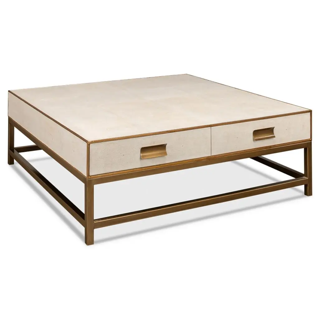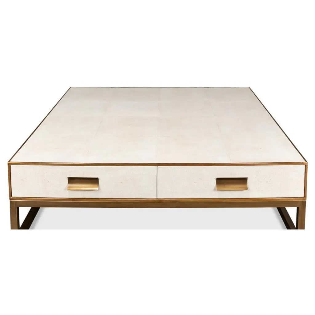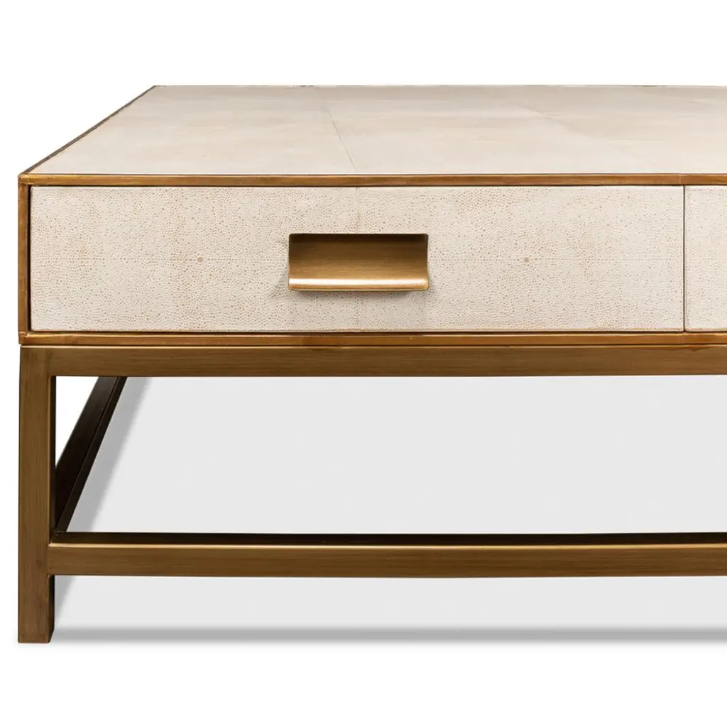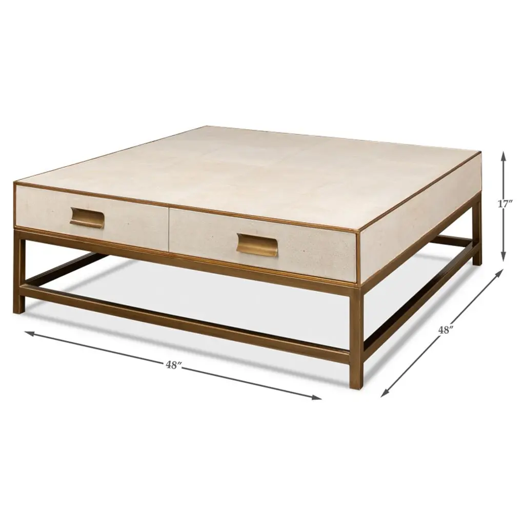 George Regency Off White Shagreen Gold Leather Square Storage Coffee Table