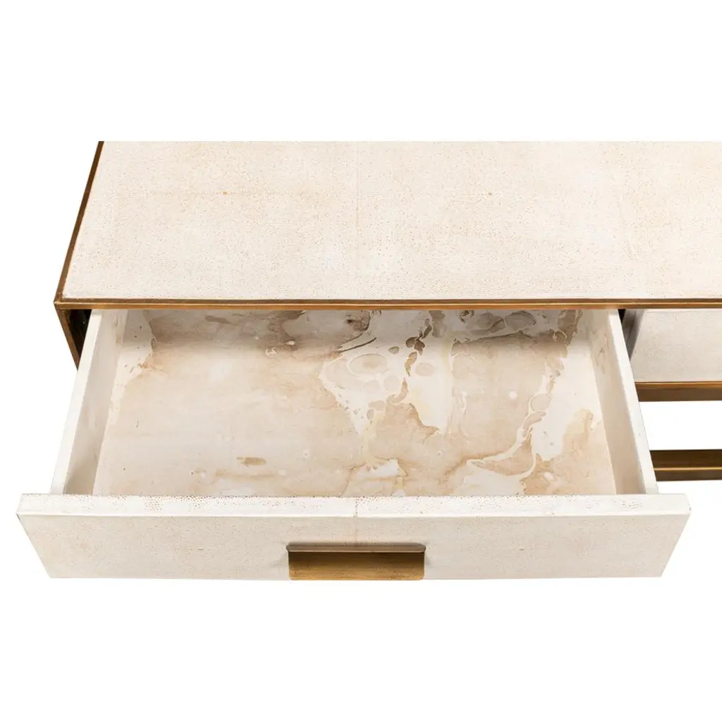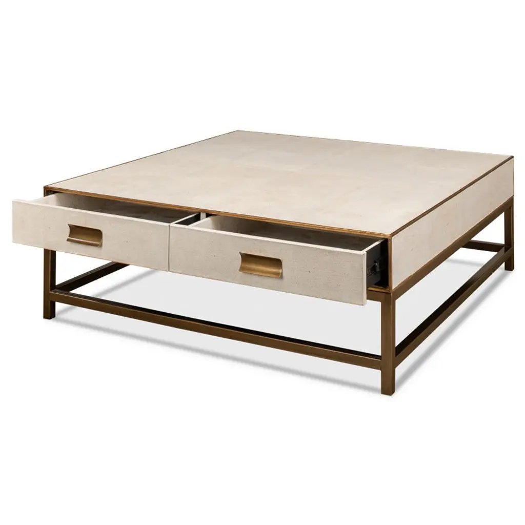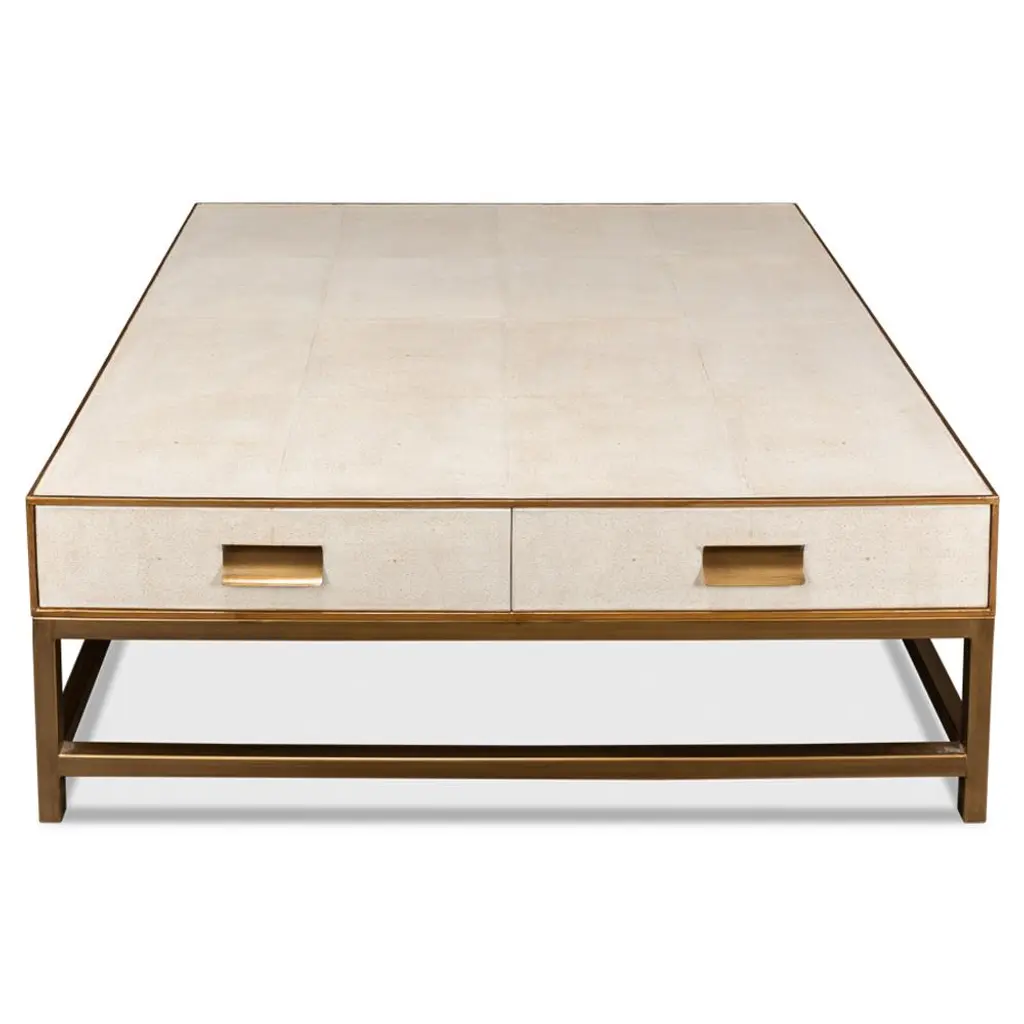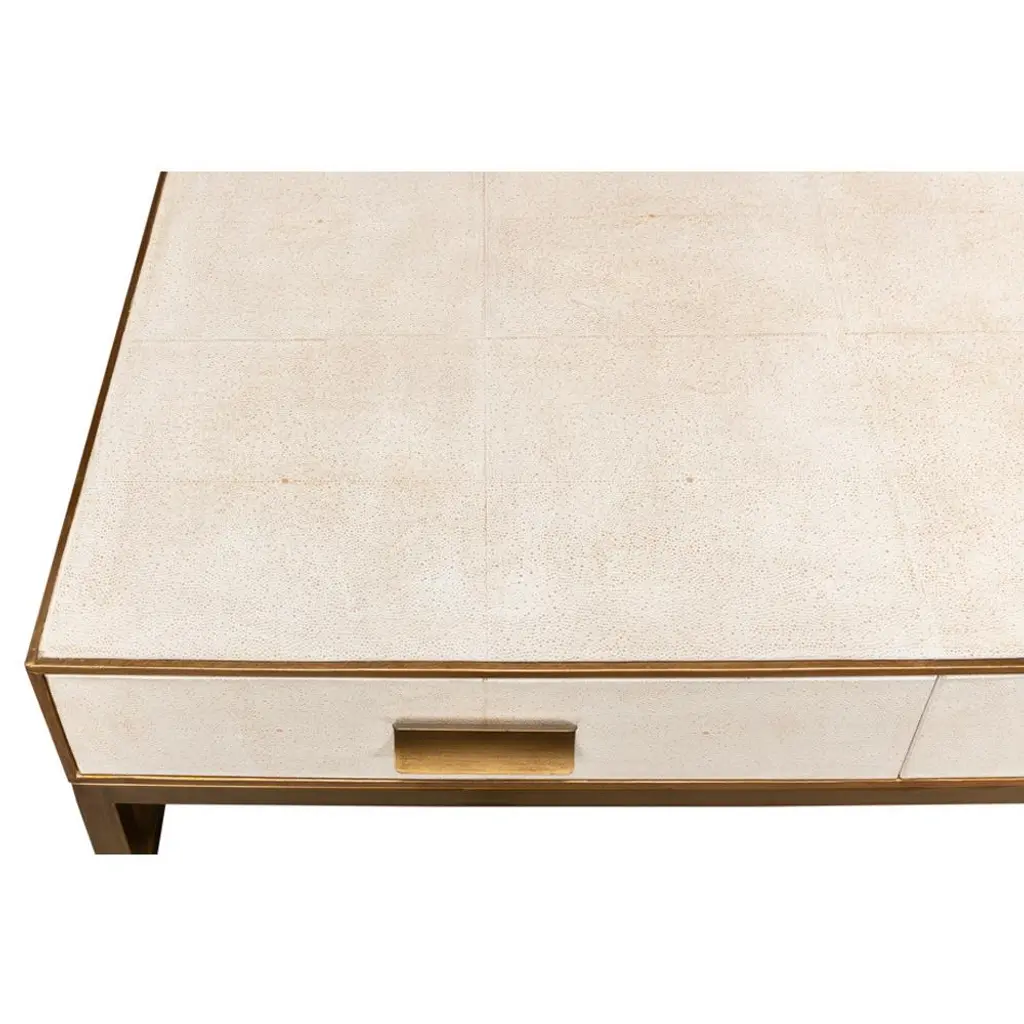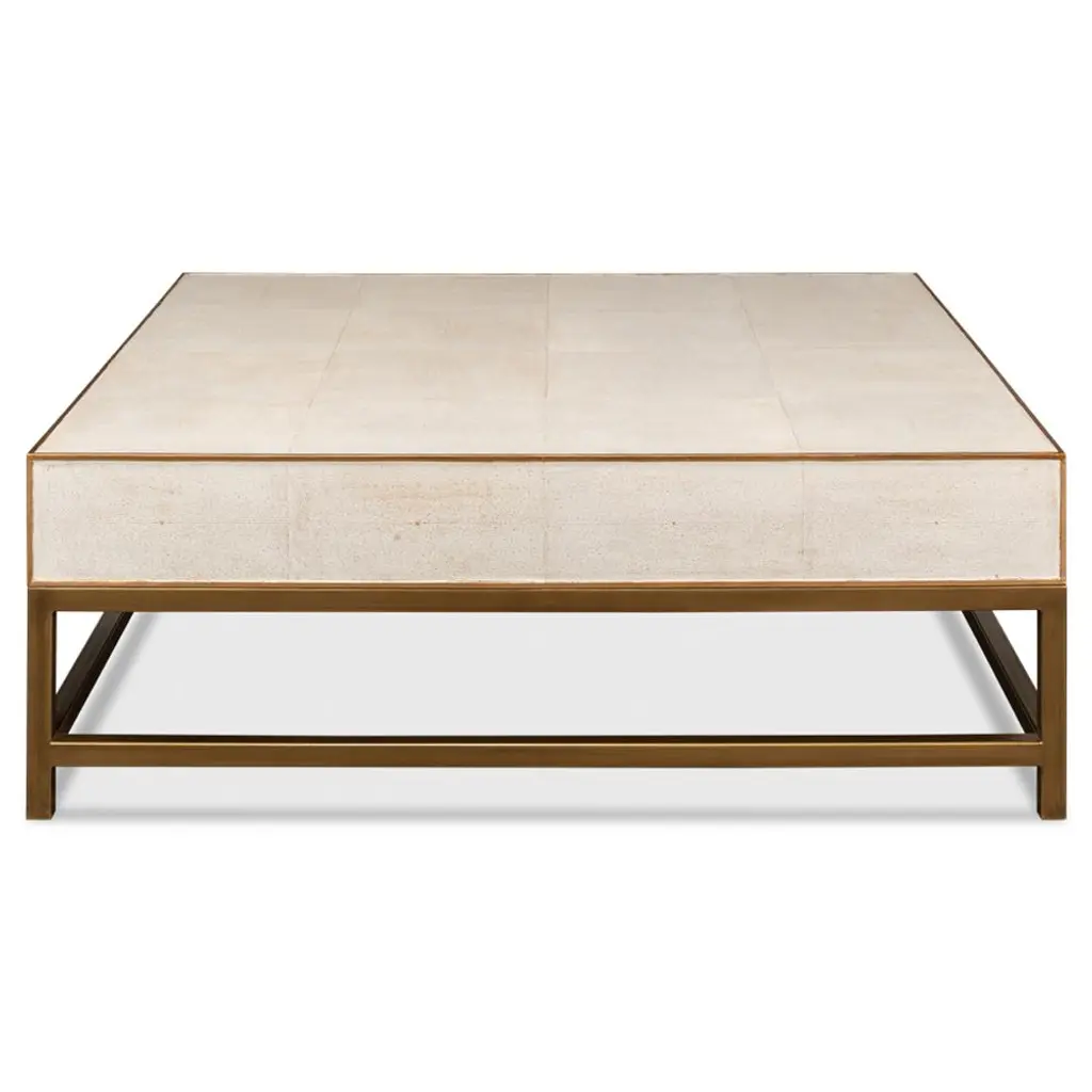 George Regency Off White Shagreen Gold Leather Square Storage Coffee Table