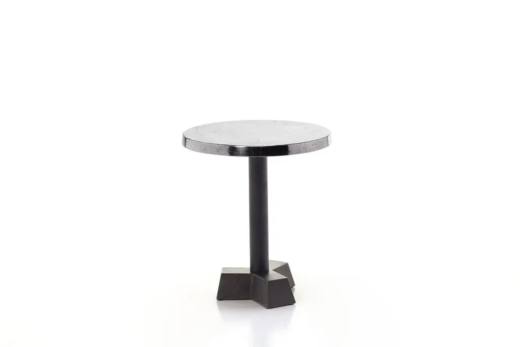 The eclectic spirit of Gervasoni can clearly be seen in the BRASS family of coffee tables, characterised by a sculptural look and feel. They are made with the base in cast iron, a column in ebony-stained beech, and a top available in cast aluminium or polished brass, materials that denote an ability to embellish the interiors thanks to their luminous reflections, either cold and silver or warm and golden. Available in different sizes and heights.Table, central base in cast iron, wooden column, glossy brass top 4 cm. With top in aluminium casting.Additional Information:Material: Iron, aluminiumTop finish: Cast aluminiumBase finish: Cast ironDimension: Ø 50 x 60 H cmAvailable in other top finish option: Polished brassAvailable in other size options: Medium, large, extra large