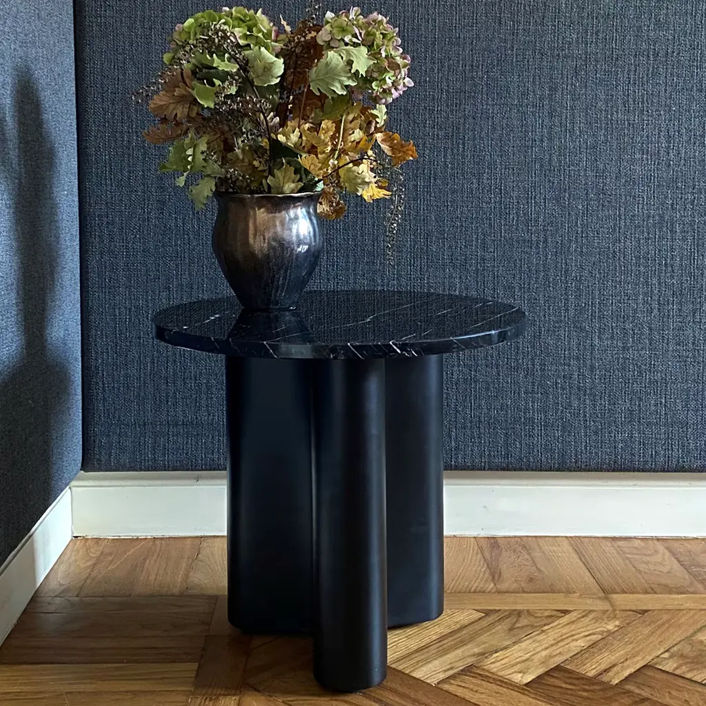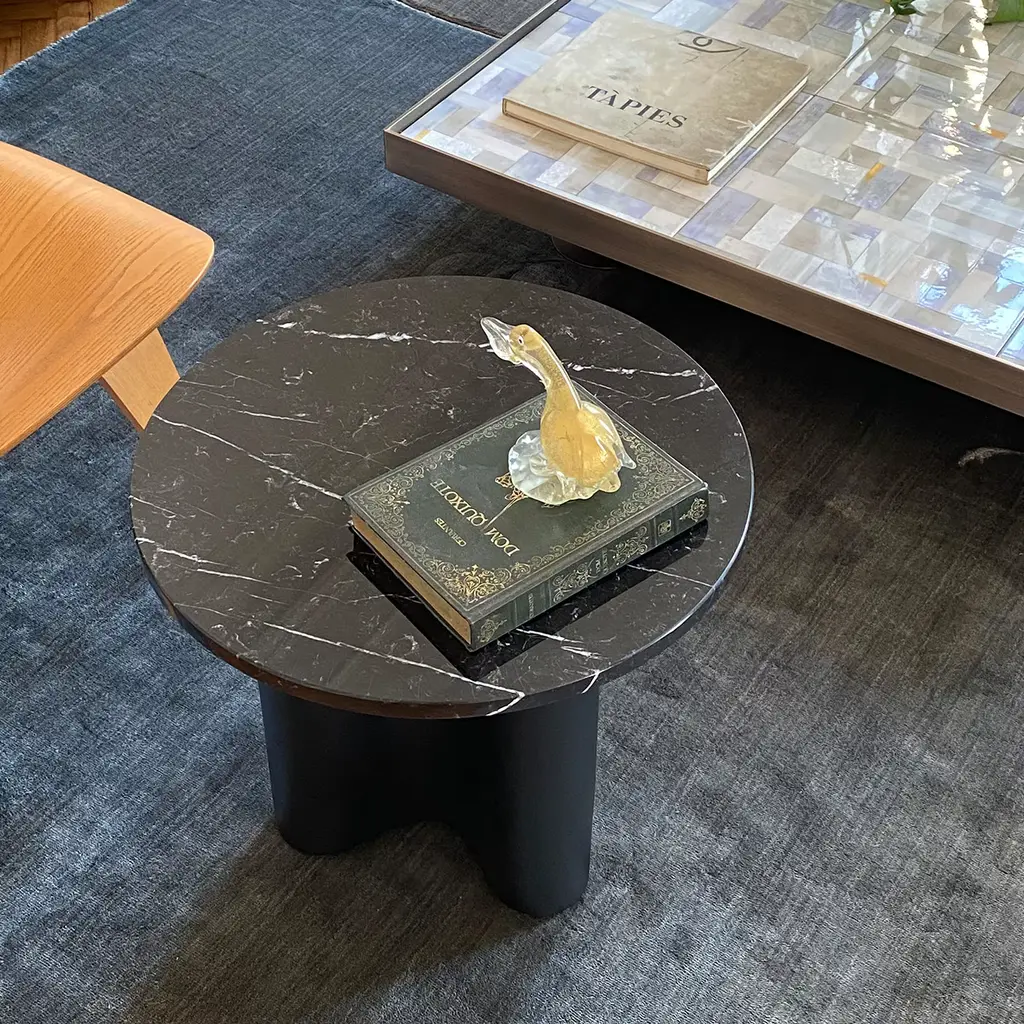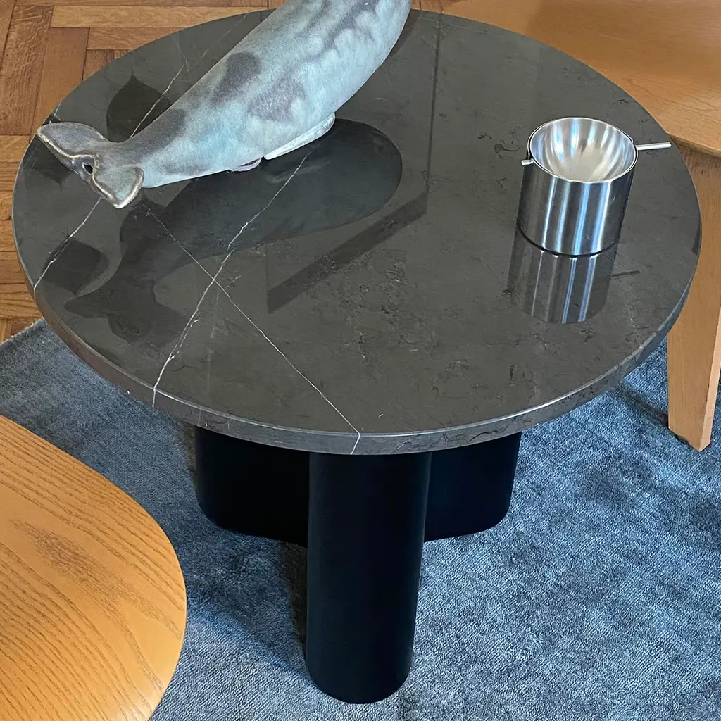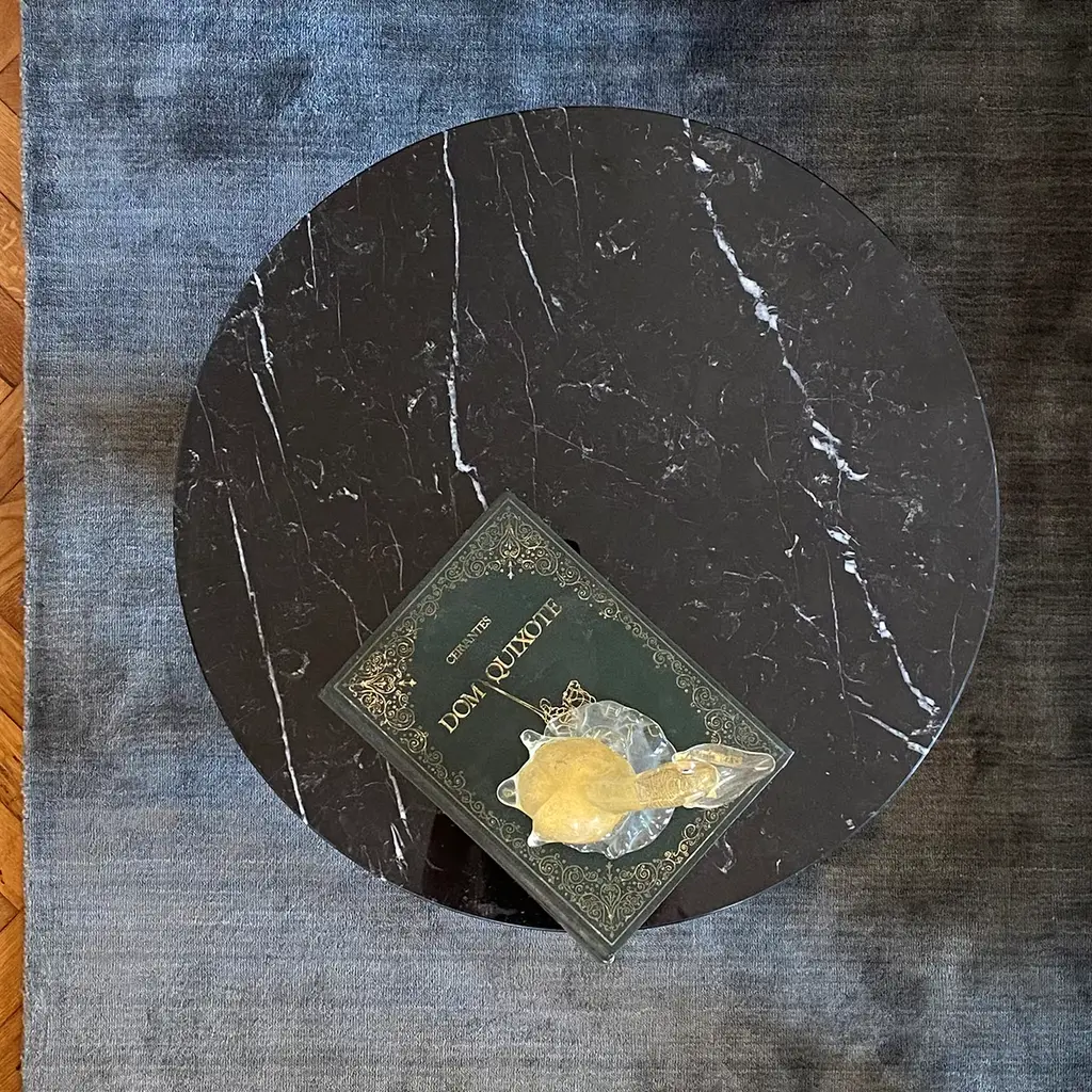 Proposed with lacquered base and marble Nero Marquina or natural stone Grey-brown. A very simple yet special piece. Part of the Giorgia table Collection. Please ask the concierge for customization options.