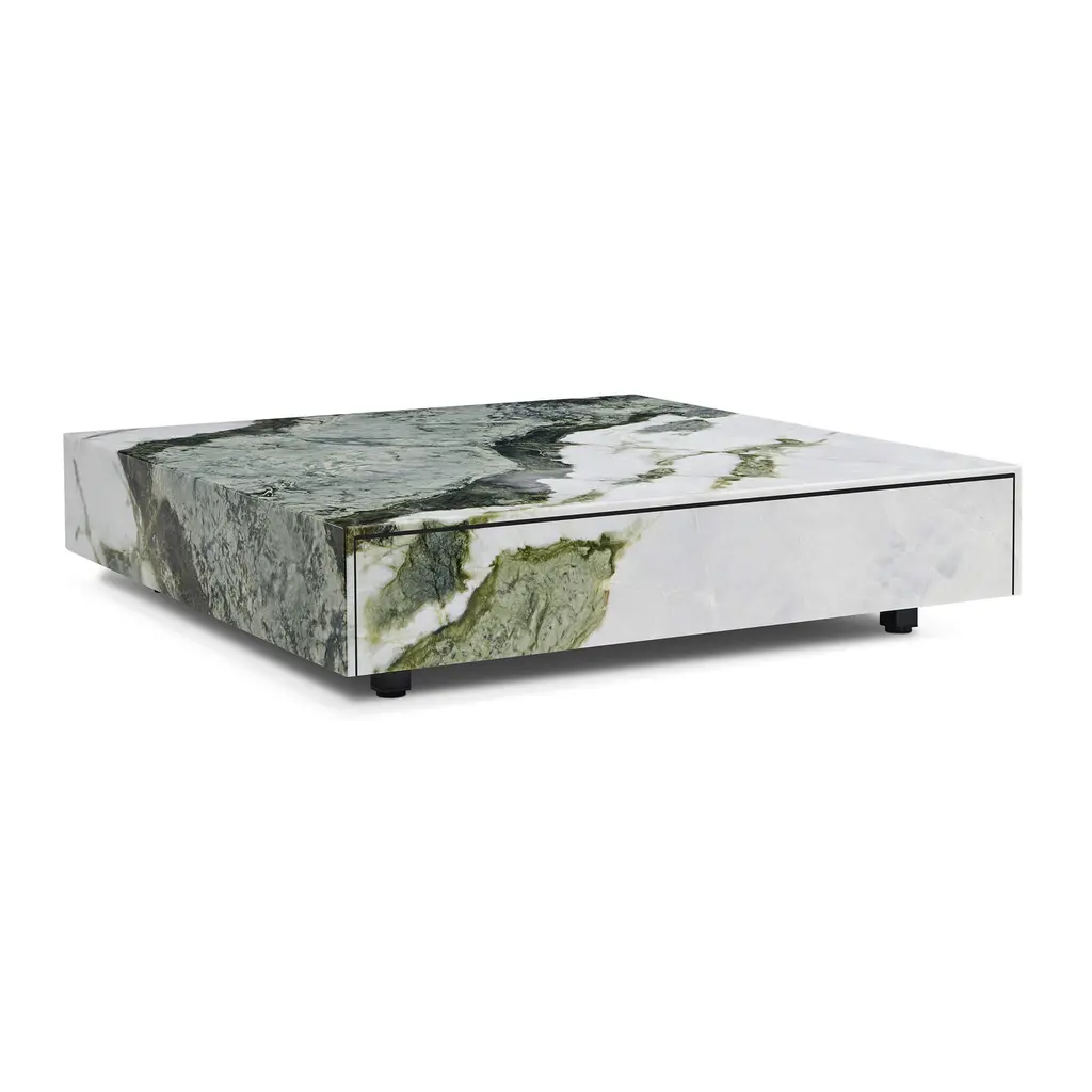Giro Modern Square Marble Low Profile Block Storage Coffee Table With One Drawer