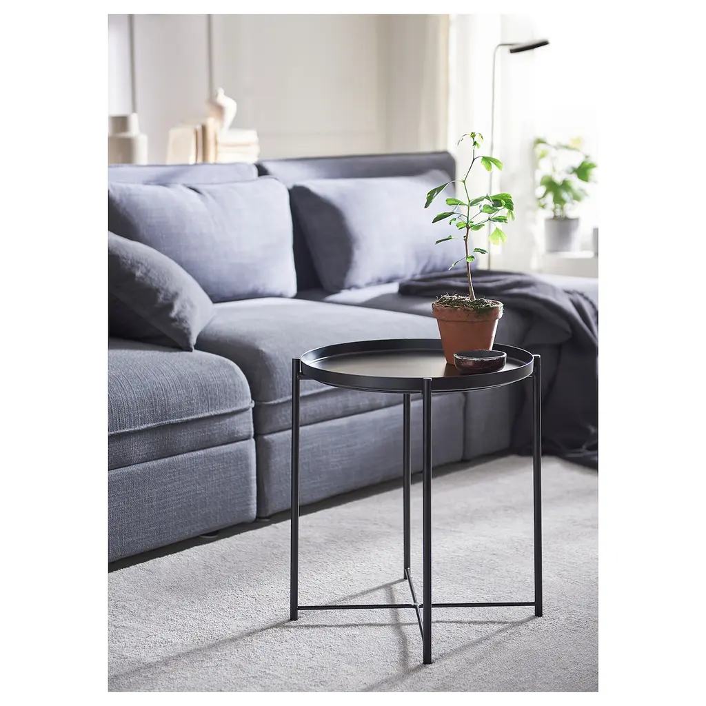 GLADOM Tray table - black 17 1/2x20 5/8 ". You can use the removable tray for serving. The tray’s edges make it easy to carry and reduces the risk of glasses or bowls sliding off. You can easily lift and move the entire table, for example from the sofa to the reading chair. Only for indoor use.