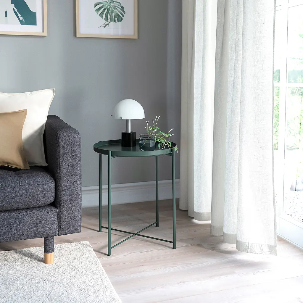 GLADOM Tray table - dark gray-green 17 1/2x20 5/8 ". You can use the removable tray for serving. The tray’s edges make it easy to carry and reduces the risk of glasses or bowls sliding off. You can easily lift and move the entire table, for example from the sofa to the reading chair.