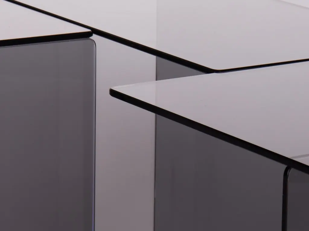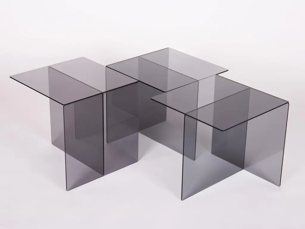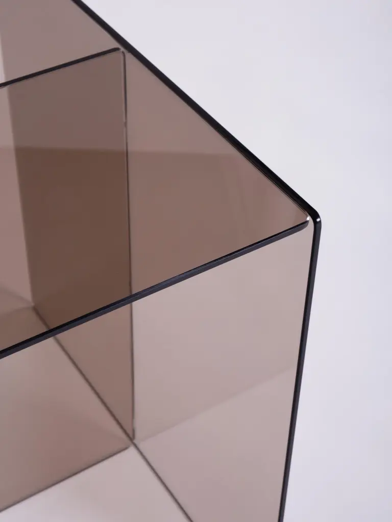 Designed in 1967 - Paradisoterrestre Edition 2023Materials: glassColours: smoked grey or bronze Designed by Augusto Betti in 1967, Glass coffee table consists of a smoked glass element whose cubic conformation allows for different compositional variations.Paradisoterrestre re-edition of this coffee table is presented for the first time on the occasion of miart and Milan Design Week 2023 at the exhibition AUGUSTO BETTI artista + designer in collaboration with Fondazione Sozzani.