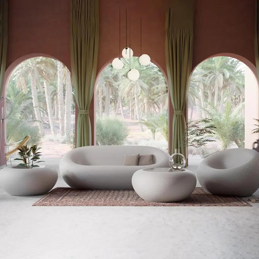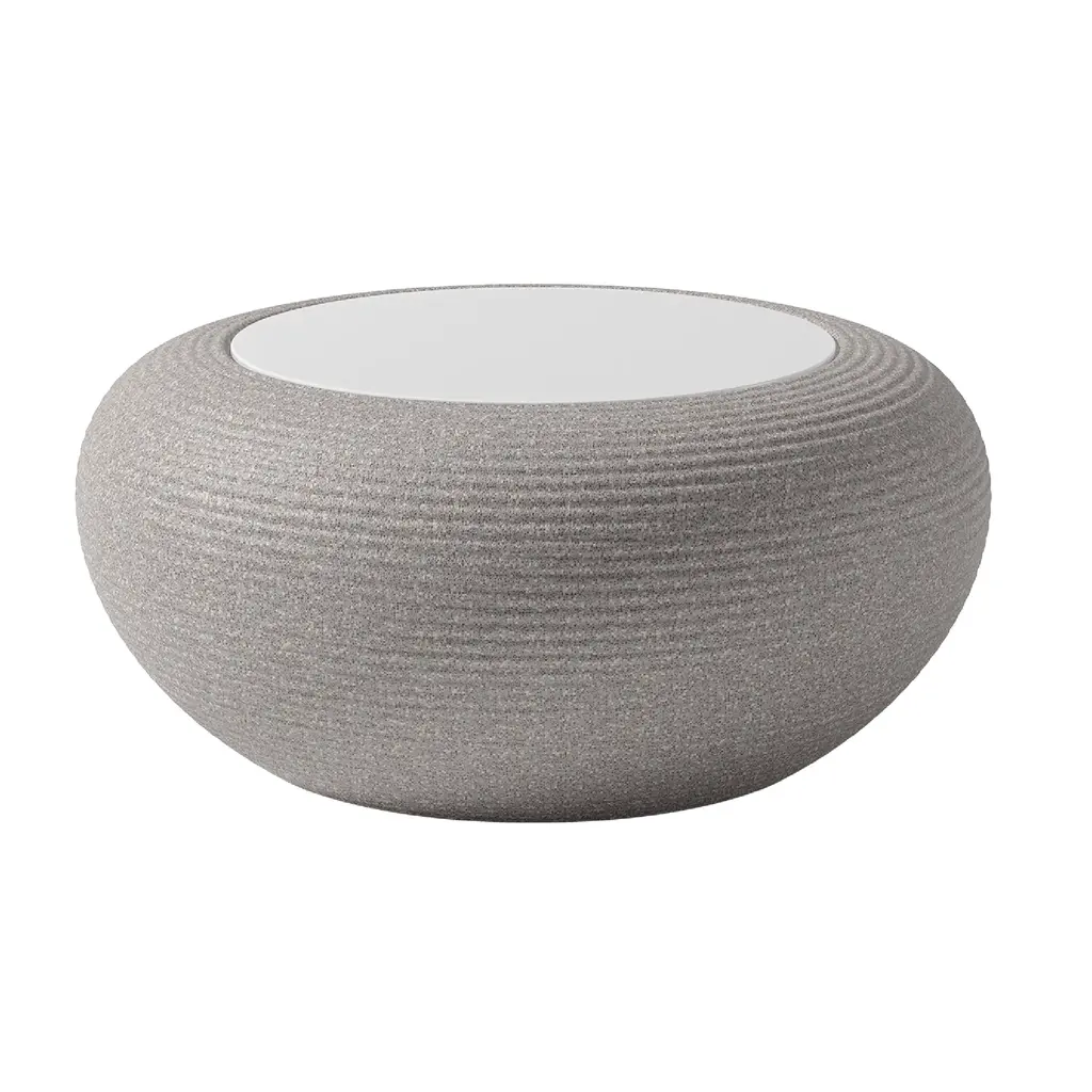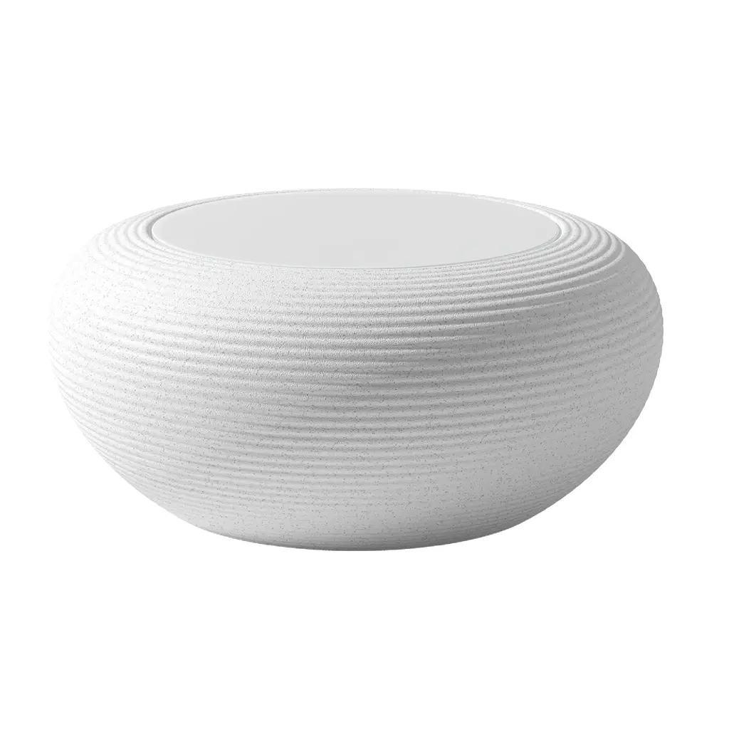This Glass Top Low Round Coffee Table by Qeeboo Nami exudes luxury and sophistication. The round body, made of recyclable polyethylene, is accompanied by a painted glass top in six captivating colors. With three uniform color options and three unique recycled options featuring 2-3 color tones, this stylish table is sure to elevate any space.