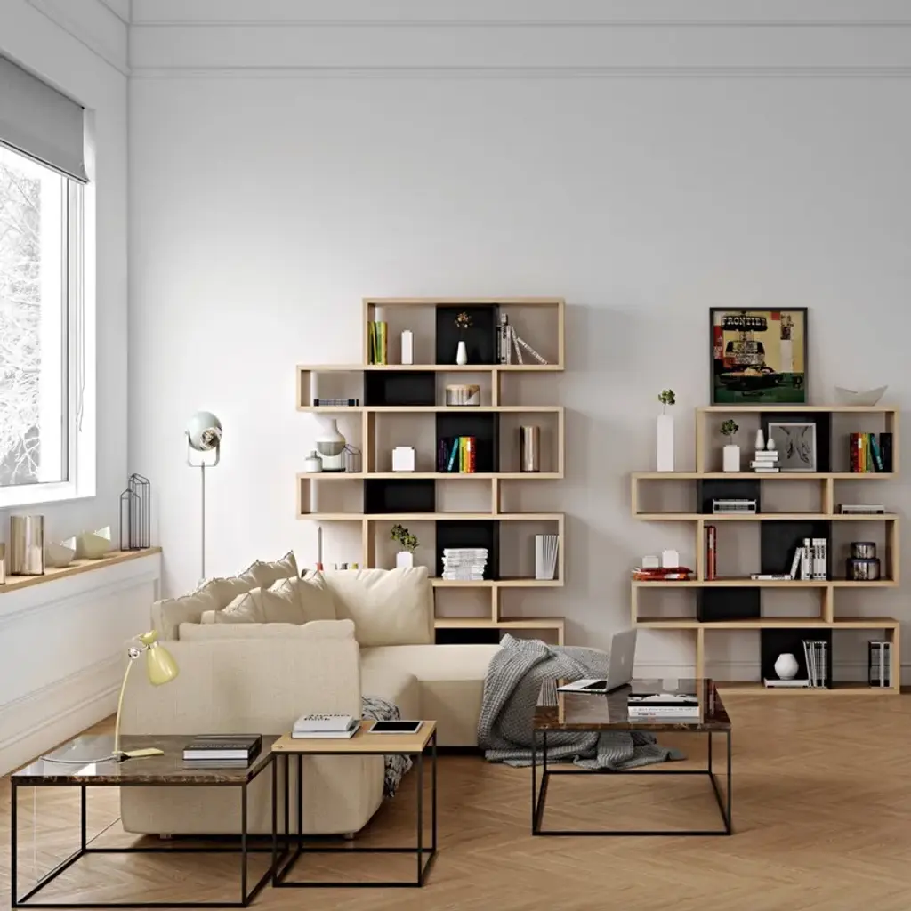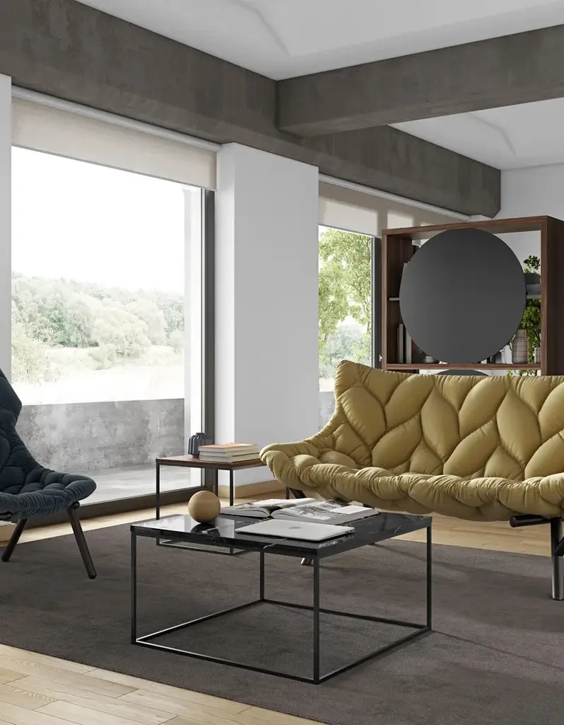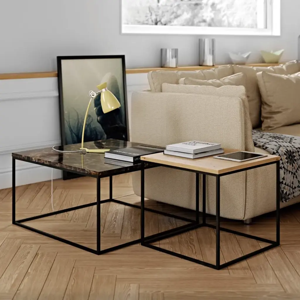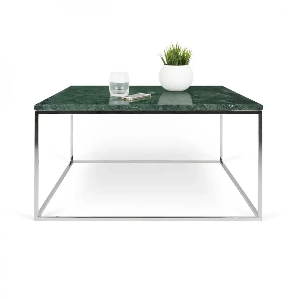 The Gleam system of accent tables is a modular system consisting of wood or marble tops available in a variety of different finishes and colors. Paired with elegant metal legs that are either lacquered black or chromed, there are dozens of different combinations available. Available in a square or rectangular coffee table and in a side table.