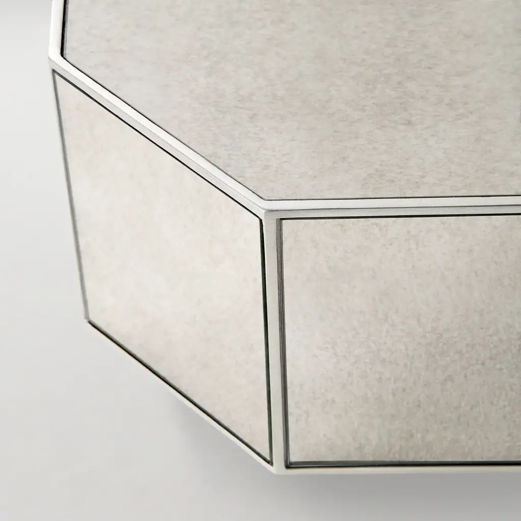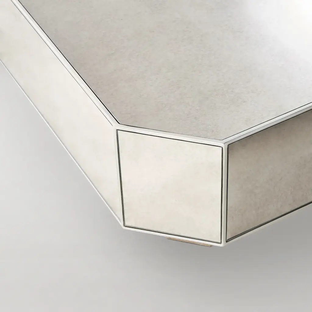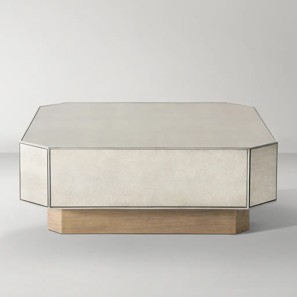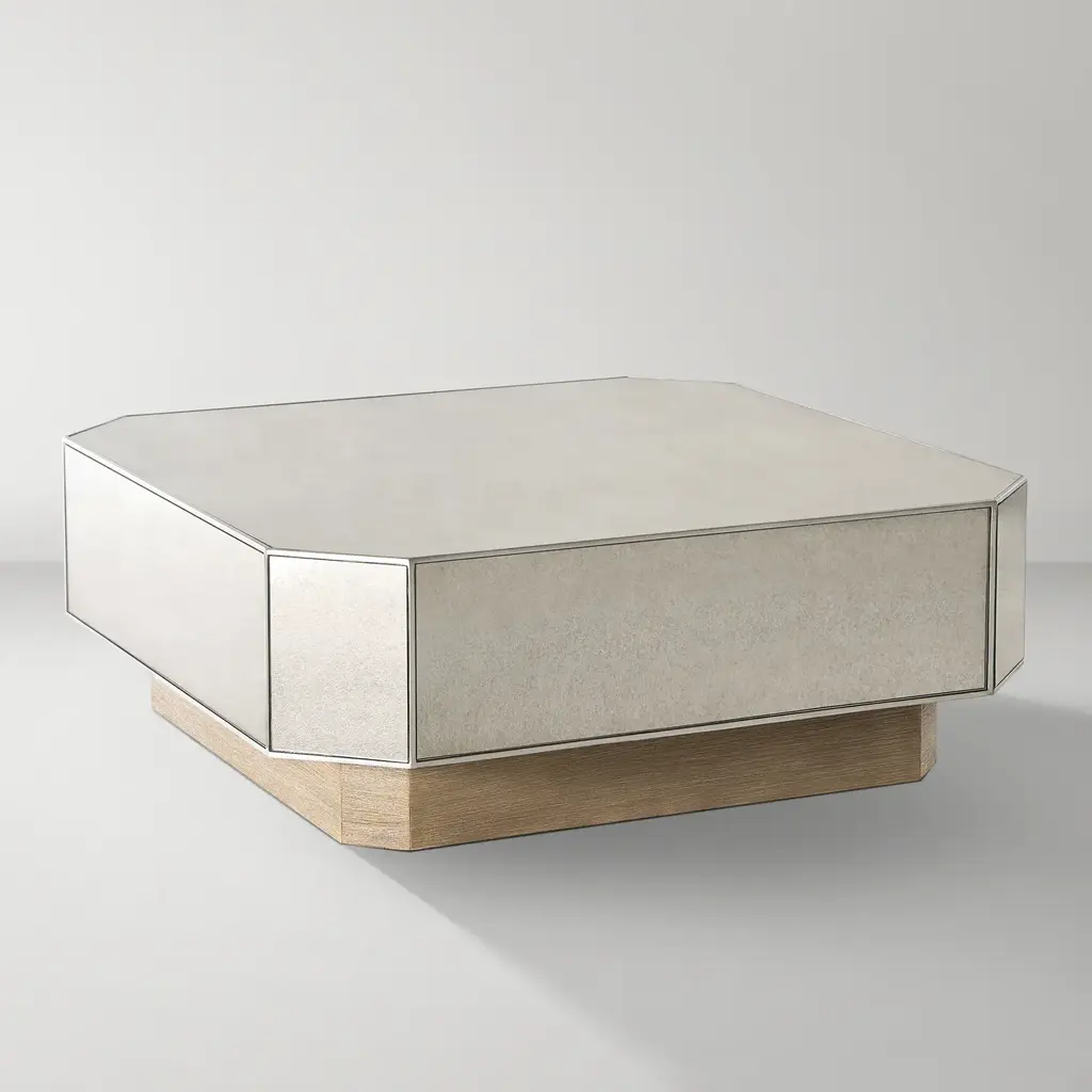 The Glimmer Coffee Table is a luminous centerpiece for any living space. Featuring a silver mirror top and a warm oak veneer base, it creates a dazzling interplay of light and reflection. Sophisticated yet functional, this table transforms your room with its refined charm. ZG Exclusive
