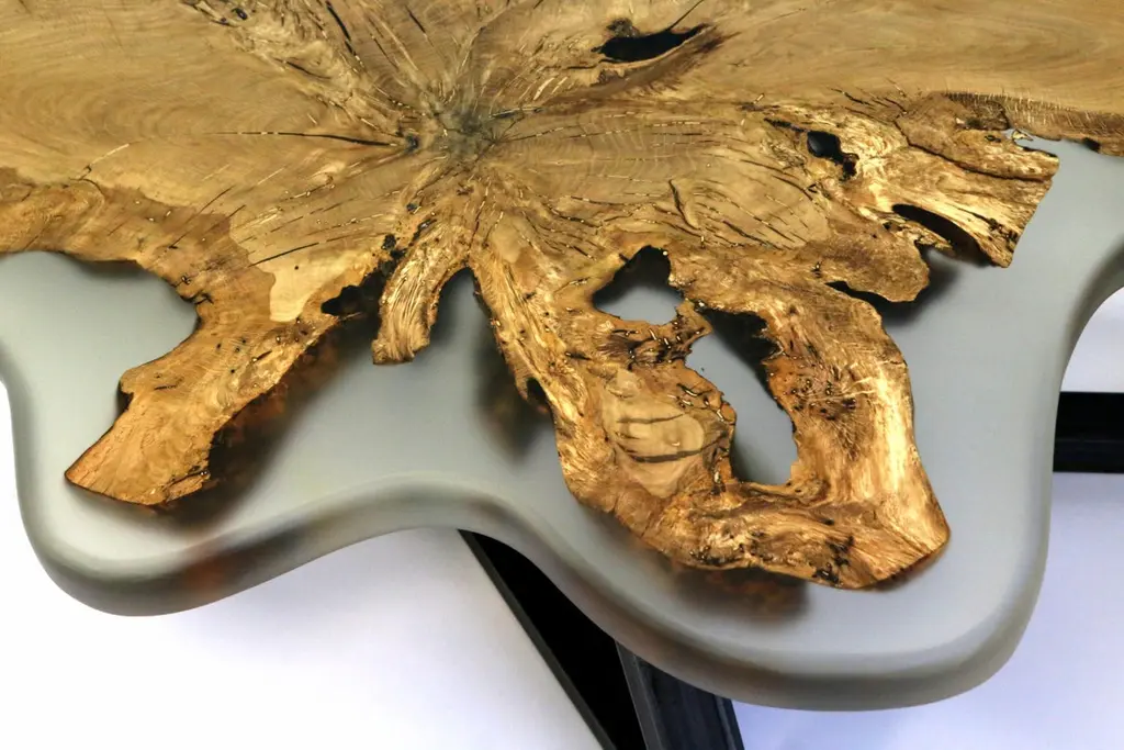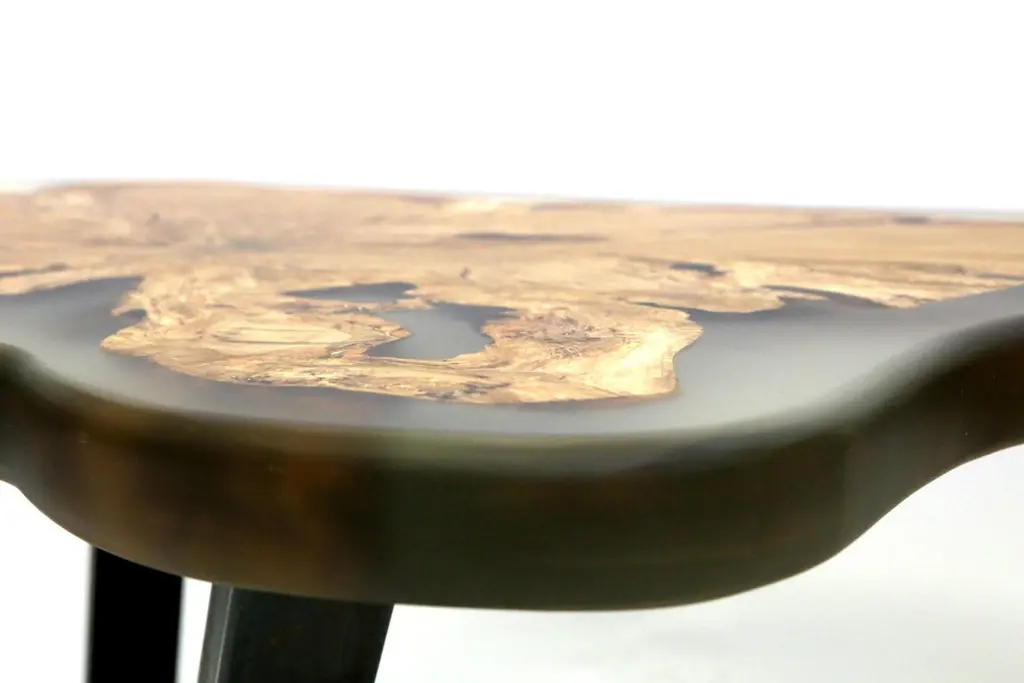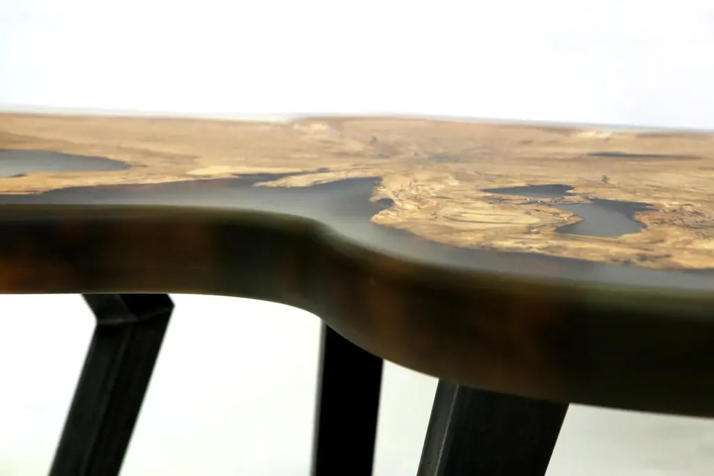 Gochelo Coffee Table by KV DesignOne Of A KindDimensions: D 50/70 x W 140 x H 45 cm.Materials: Oak, epoxy resin, and metal.Everything is custom-made 1 of 1 edition. Please contact us.KV Design is a team of professionals, and we believe that our custom-made furniture is not simply part of the interior design. We use high-quality wood and epoxy resin in the production of unique state-of-the-art products. Our ideology is that our tables are not solely to be used for their main purpose, but also to be observed and enjoyed as a piece of art. Hence, we combine functionality and elegance into the creation of a captivating and complex product. For the production of our furniture, we strive to select the highest quality materials from leading brands on the market. We invest endless hours of manual labor in the making of every single element part of our furniture. However, everyorder is strictly delivered within no more than 4 weeks.