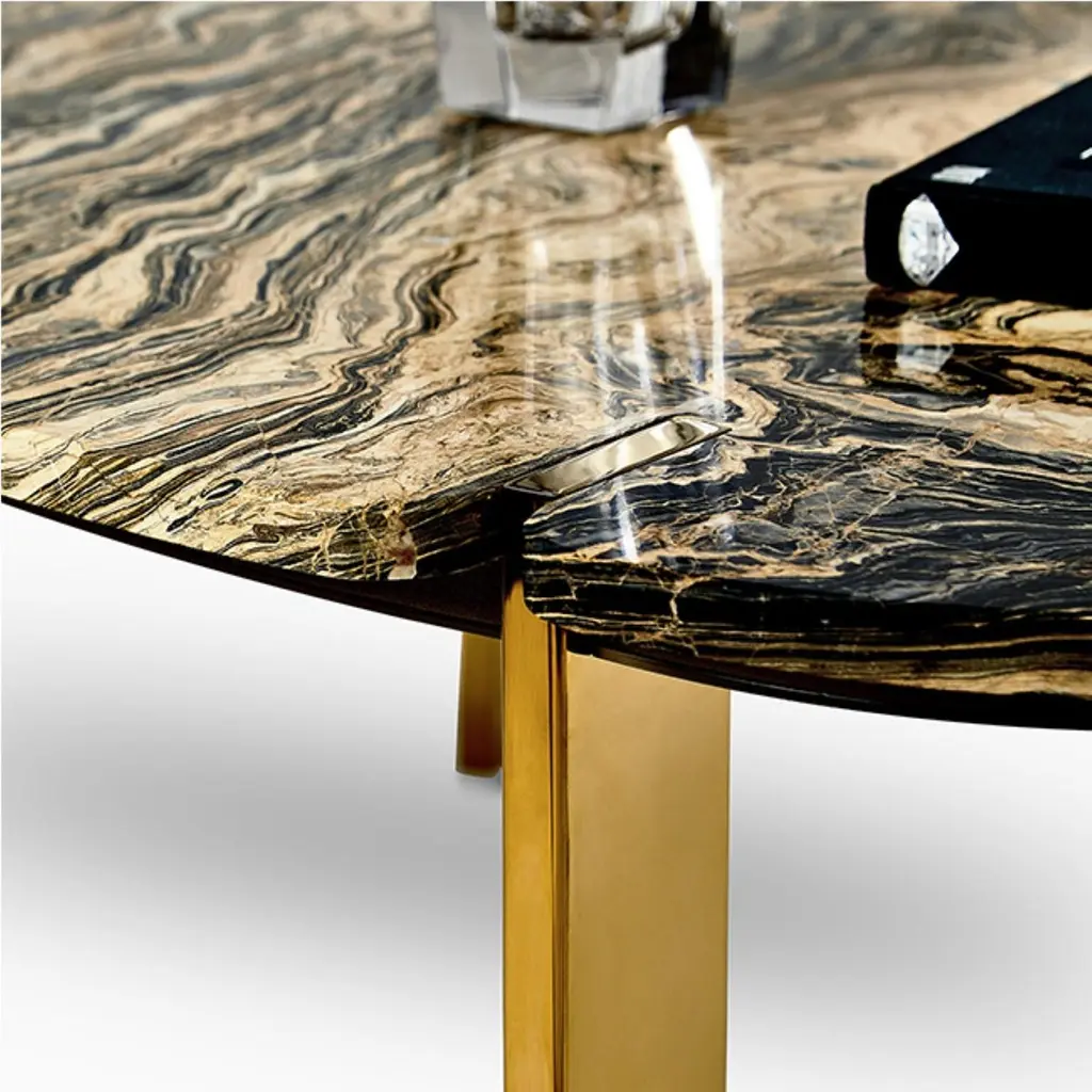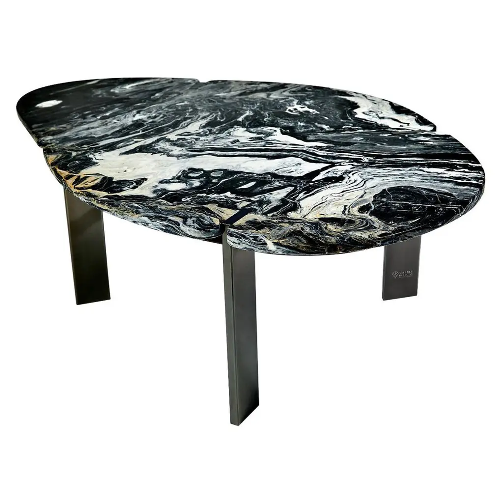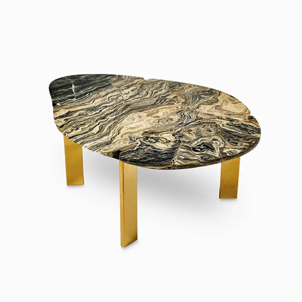 Gold Halys coffee table by Marble Balloon.Dimensions: W 130 x D 88 x H 39.5 cm.Materials: Steel, MarbleTaking its form from the famous Halys River, it consists of carrier legs made of titanium coating on stainlessmetal and a marble top.Available as Gold and Black editions. Please contact usMarble balloon is an interior design and high-end furniture brand based in Istanbul. Marble balloon is devoted to create refined and sophisticated designs bringing the premium quality materials and finest craftsmanship together. Adhering to a design philosophy cherishing organic and asymmetrical forms whilst challenging the nature of marbles implying fluidity, incorporating only the extraordinary marbles and natural stones into handcrafted and timeless creations.