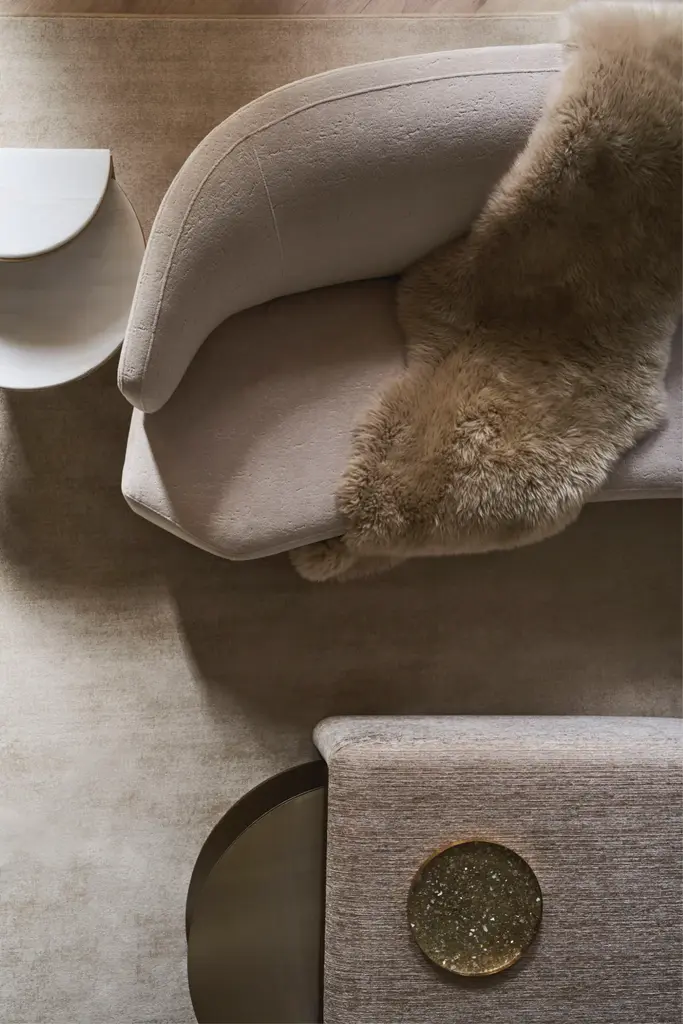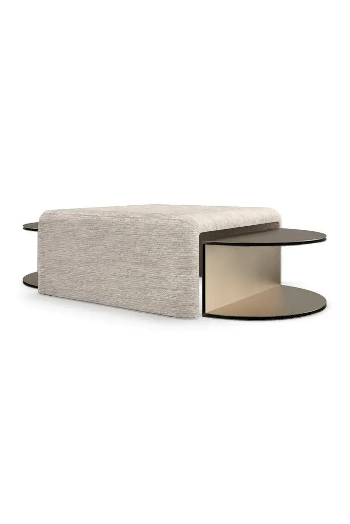 Inspired by the elegance of geometry, the Caracole All Together Cocktail Table is a dual-function masterpiece designed in a semi-circular shape. Pair two of these tables to create a perfect circle. Its innovative design features a double-wall of bent metal, creating a captivating cantilevered structure with upper and lower shelves. It showcases a Champagne Gold finish, elevating any space with its luxurious industrial allure. Pair it with our Bridge the Gap table for a unique cocktail ensemble, or use it as individual end tables.Download Assembly Sheet