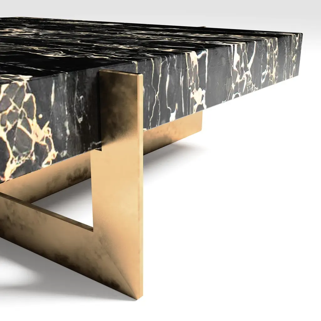 The Golden Rock II coffee table, limited edition by Grzegorz MajkaEdition 1 of 8Dimensions: 39.37 x 39.37 x 11.81 inMaterials: Marble and Solid BrassWhen one hears the term, “Golden Rock”, it’s hard not to envisage scenes of regal beauty. A mansion of gold glittering in the sunset, or a fabled mountain of treasure in the American Wild West, with unspoken riches hiding within. Bringing such opulence into homes across the country is GRZEGORZ MAJKA LTD, headed by master craftsman Grzegorz Majka. The Golden Rock is an exclusive, never before seen coffee table built by Grzegorz and his team, which made its debut at Luxury Made 2016 in London, for which it was specifically designed and built. The Golden Rock coffee table was featured alongside a number of pieces from The Diamond Collection, and both ranges exhibited the endless possibilities offered by the use of natural stone and trends which the brand hope to go forward with in 2017. Grzegorz is confident that the use of 100% natural materials, combined with the expert craftsman’s keen eye for style and artistic quality pushes GRZEGORZ MAJKA’s LTD appeal beyond the expectations of the luxury goods market. When the market called for unique luxury products, the GRZEGORZ MAJKA LTD answered with The Golden Rock coffee table. Embodying the notion of being truly personalised, the Coffee Table is a truly unique offering to the interiors industry. Grzegorz designed The Coffee Table with the goal of creating a simple design with simple execution. Fitting together perfectly in a mathematical fashion, shapes fit together in symbiosis, combined with the finest specifically selected, expressive premium class materials. Speaking about his approach to GRZEGORZ MAJKA LTD products, Grzegorz commented, “the purpose is to find harmony of the two styles Minimalism and Art Deco, which together make up an entirely different dimension of designed interiors.”Grzegorz Majka is a self-taught Polish artist who explores the concepts of modularity, sculptural form, and artisanal processes in the design of furniture and lighting. His work seamlessly blends craft and contemporary design, incorporating high-quality noble materials like natural stone, wood, metals, and hand-blown glass. Guided by a deep respect for the inherent character of materials, Grzegorz highlights natural irregularities, textures, and patterns - veins in stone, the living patina of untreated metals, the organic feel of brushed surfaces. These elements are not hidden but embraced, inviting collectors on a sensory journey through touch and time.His studio practice focuses on handcrafted limited-edition furniture that is not only functional, but also living, authentic, collectible art.