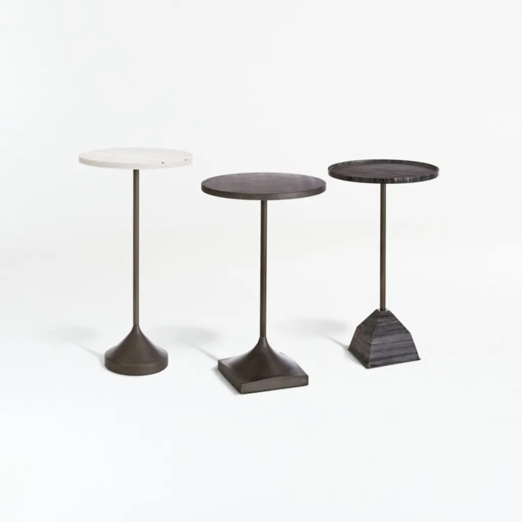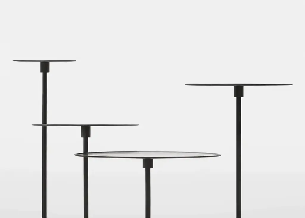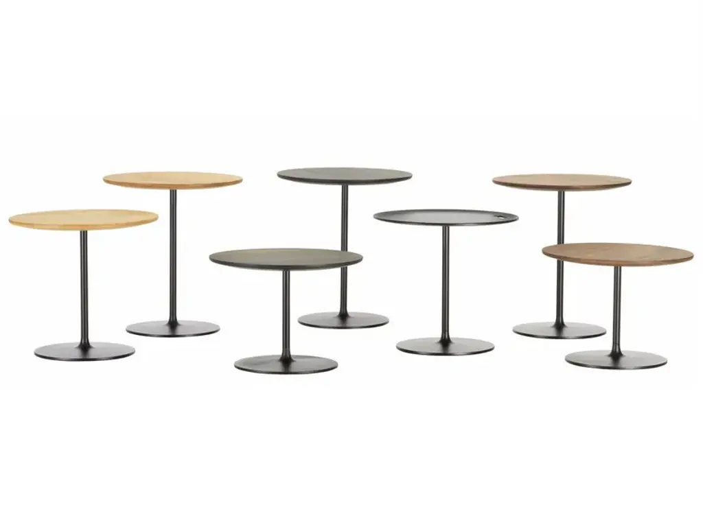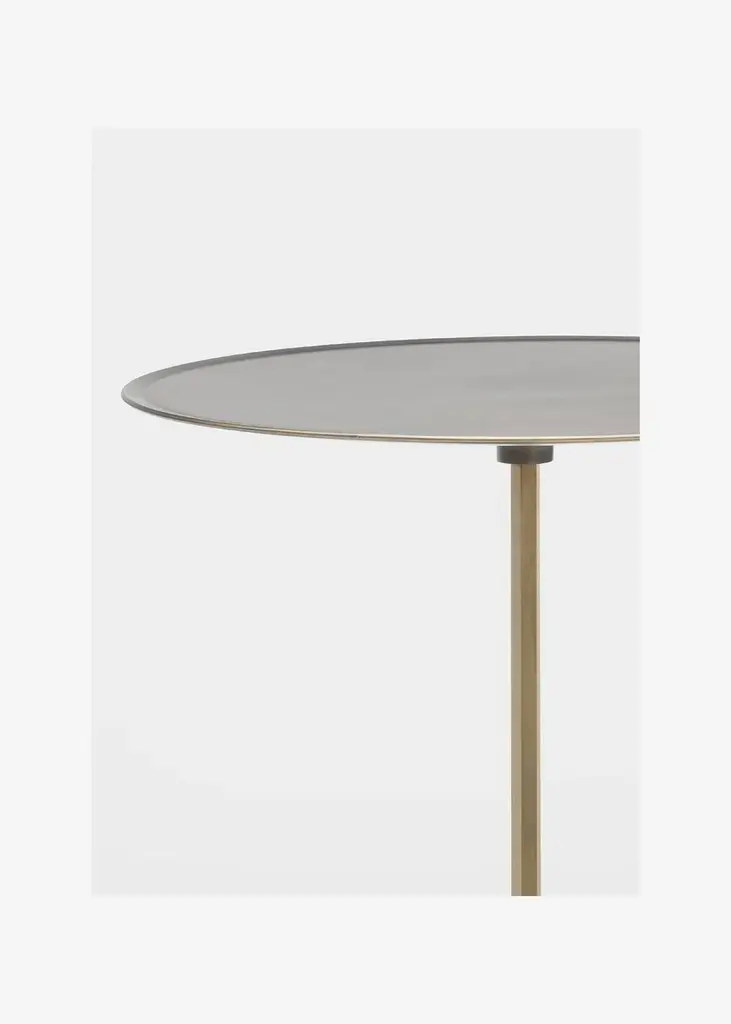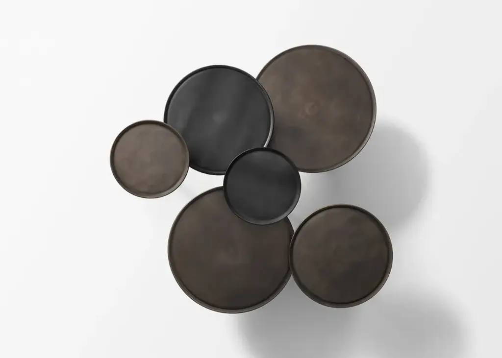 Architect Gianfranco Frattini signed Gong, which was unveiledfor the first time in 1987.Gong is a range of round metal tables of formal simplicity and clean lines, which are available in various sizes and heights, and can be used individually or in groups.Today the collection is enriched with more contemporary finishes and an elegant two-colour version. Top and standThe two metal disks of different widths, one for the base and the other for the slightly concave top, are joined by a hexagonal stand through small metal spools.The side tables are entirely painted in gunmetal or an orbital bronze finish. The stand is in brushed brass for the two- coloured version and sharply contrasts with the two finishes. Orbital bronze: hand-brushed handcrafted finish to create the “scratched” effect.