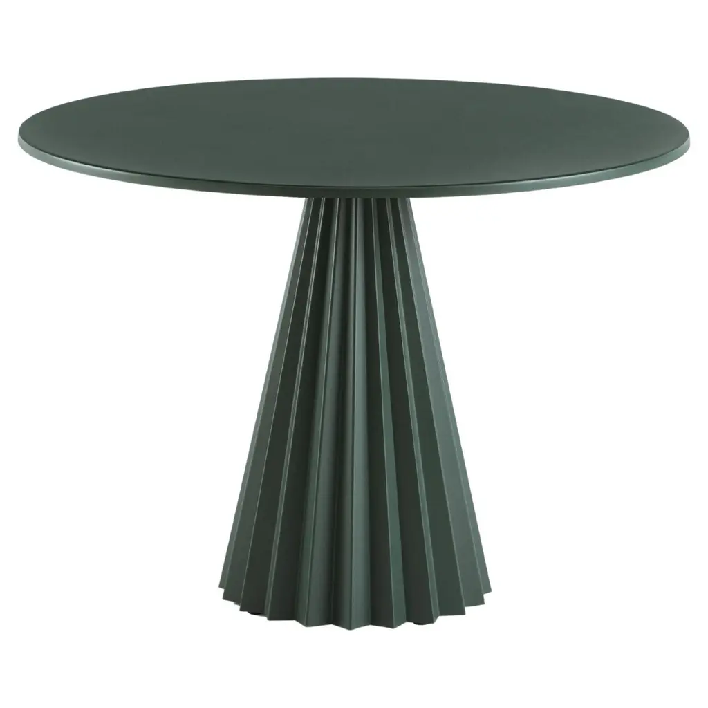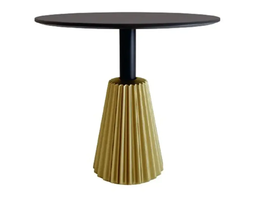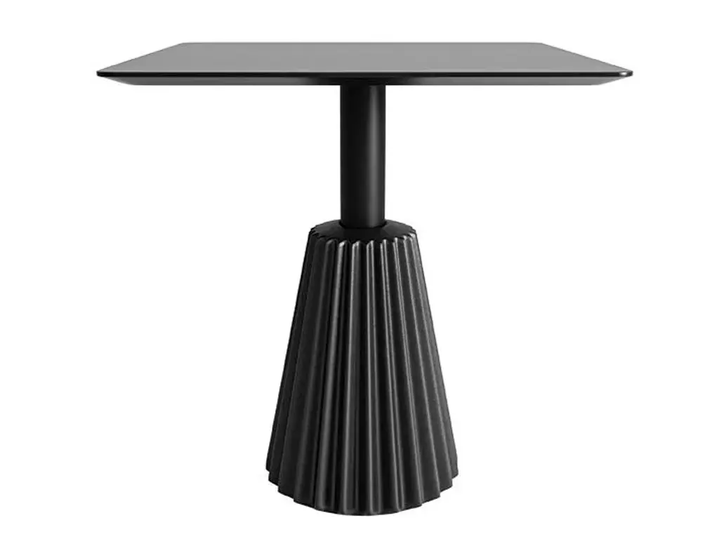 Table with base made of concrete agglomerate natural or painted and metal stand. The version with metal plate at the ground has the purpose to support tops of larger size. The top to match with can be round or square in all types and finishes proposed in the catalogue and in the sample bookAn iconic accessory of the aristocratic wardrobe of the XVI and XVII century. In this collection of tables the pleated process becomes the distintive element that enanches and refines the concrete base. Suitable both for indoor, contract or residential, and outdoor