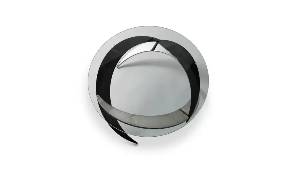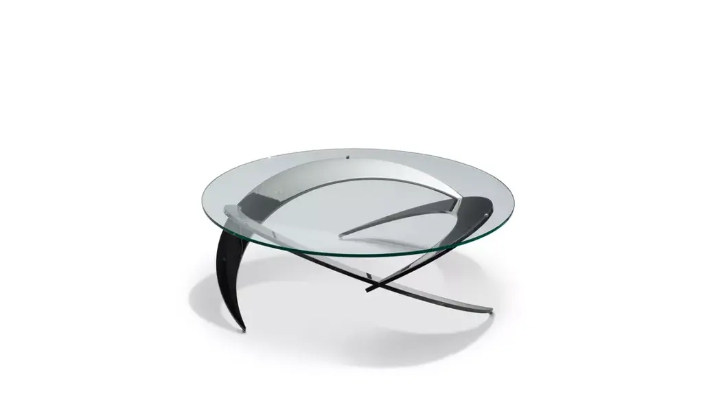 Simple and intriguing, the bases of the Gorizia collection are composed of 3 identical metal crescents that intersect to form a three-dimensional base. The base can be oriented downwards, in a terrestrial version, or upwards, in an aerial version.