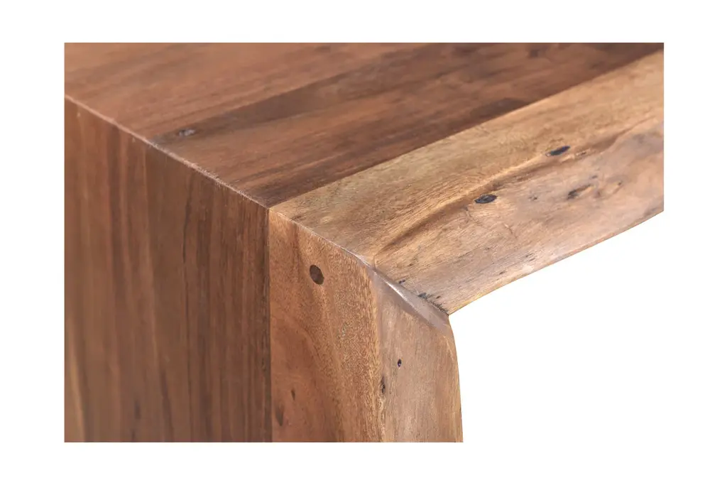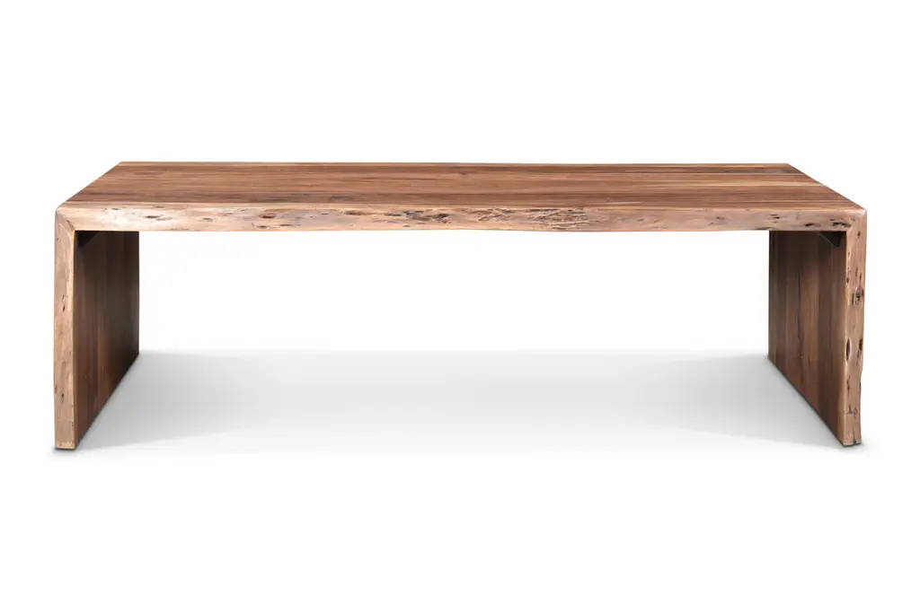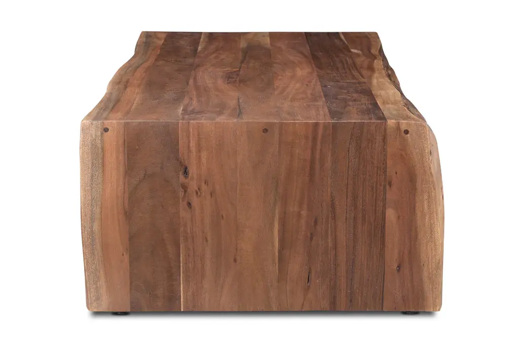 The Grainger Coffee Table proves that great design doesn't have to be complex or overly detailed. It is crafted entirely from solid acacia wood, with a smoked natural finish that brings the stunning woodgrain pattern to the focal forefront. Each table features dramatic live edge detailing, giving it a raw, rustic look and feel. Anchor your space with rustic simplicity with this one-of-a-kind accessory.