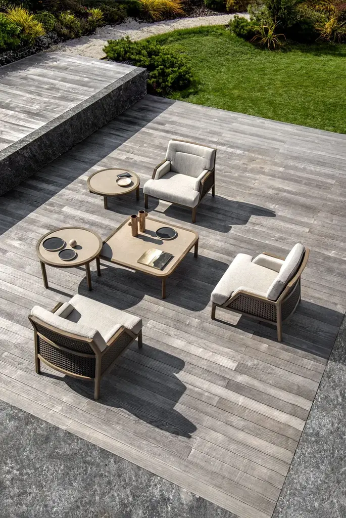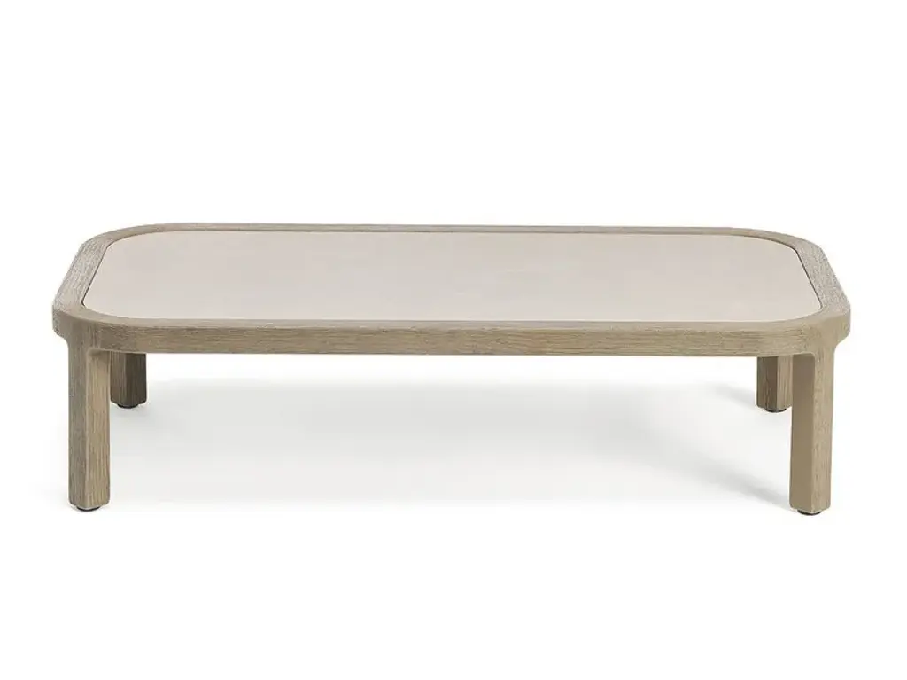 Rectangular coffee table with structure in natural or pickled teak and top in ceramic stone.GRAND LIFE is the new ‘story’ designed by Ethimo, a lounge and dining collection conceived by Christophe Pillet to enhance the most elegant of outdoor spaces. A line of furniture whose name encapsulates its significance.GRAND LIFE conjures up images of timelessly beautiful places, of captivating and relaxing atmospheres, landscapes that inspire sensations of peace and serenity, and outdoor spaces decorated with simple, warm, and elegant furniture, an authentic expression of the Italian Way of Life. Mediterranean style, contemporary design, and nobility of materials: the GRAND LIFE collection bears the unmistakable mark of Ethimo products.GRAND LIFE epitomizes the standards of manufacturing excellence, incorporating artisan quality and innovation with comfort and design. This collection offers sofas and over-sized lounge chairs of decisive, pure, and essential architecture and with meticulous and delicate details; furniture that reveals a sartorial spirit and that represents a new philosophy for al fresco living.The warmth and elegance of teak and lightweight fibre combine to create extraordinarily ergonomic and comfortable furniture, the expression of a more relaxed lifestyle and a more sophisticated daily routine. The body of the furniture is constructed in teak with a metal core, while the backrests of the various types of seating are formed through the skilful and elegant weaving of acrylic rope. Fluffy, generously-sized pillows, made from soft fabrics specifically designed for outdoor use, accentuate the sense of comfort and well-being. A line of furniture for a ‘Grand Life’ in the open air, capable of conveying the tactile and visual sensations that characterise the most elegant indoor situations.Ethimo and Christophe Pillet re-interpret contemporary outdoor spaces with a collection that pays homage to Mediterranean style and Italian design, in its most current and, at the same time, most captivating form. GRAND LIFE furniture determines the aesthetic value of the space it occupies, rendering it even more relaxing and inviting: thus free time, instants of leisure and conviviality, become truly special moments.