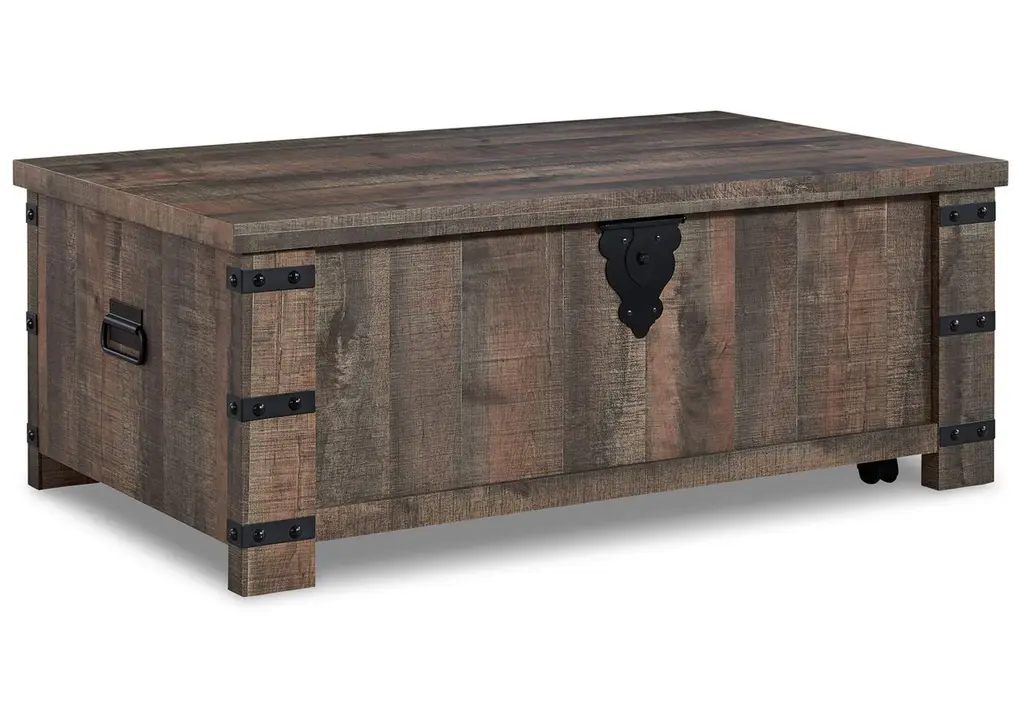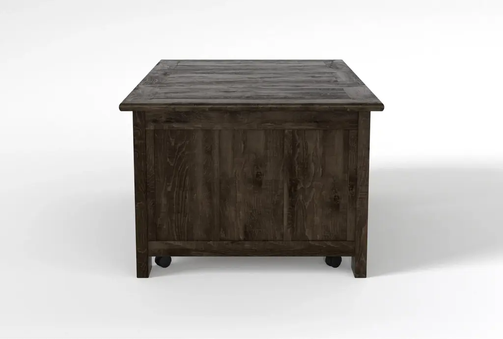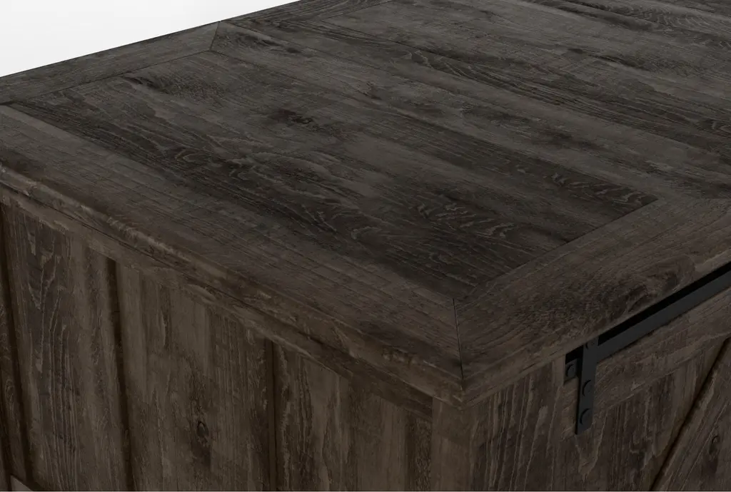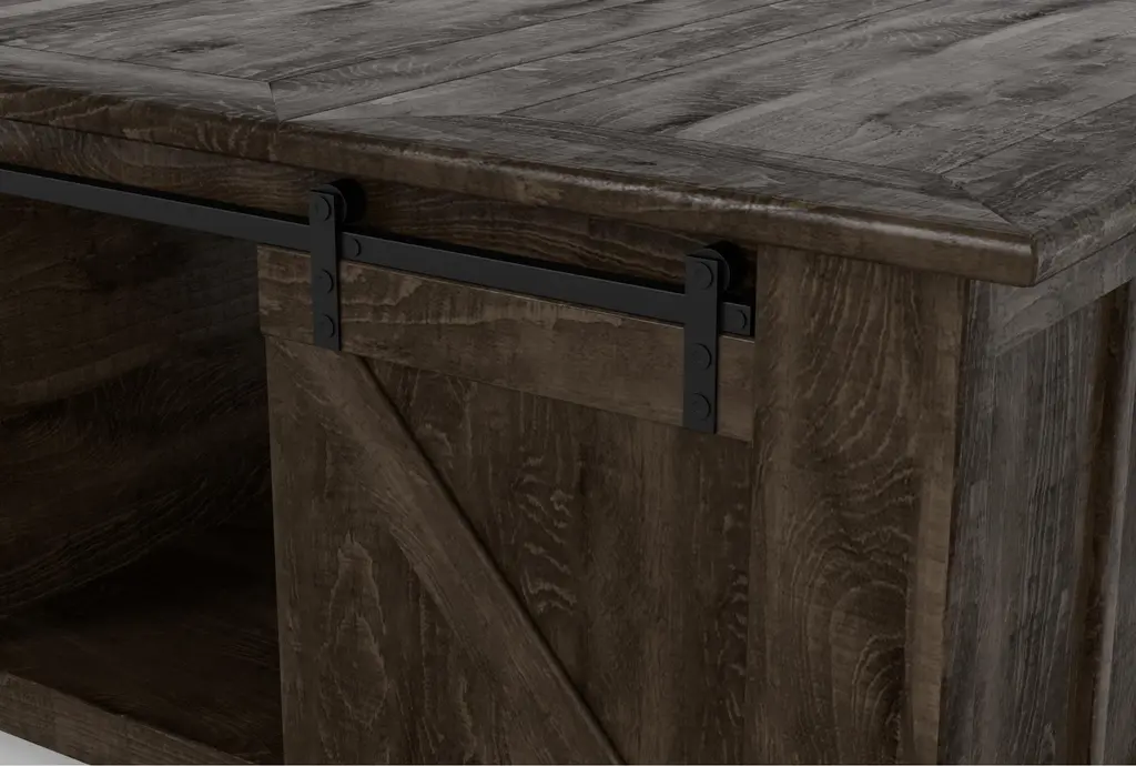 When it comes to furniture with character, our Grant cocktail table delivers that and more. From the paneled pine construction and industrial metal details, to the charming weathered charcoal finish, this piece will bring rustic warmth to your home. In addition to casters and a lift-top design, it boasts unique sliding barn door detail on both sides. Shop coffee tables like this one and find the perfect design for your space.