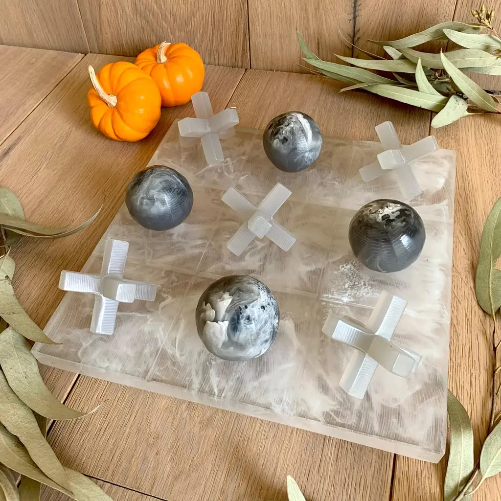 Our Tic Tac Toe is a beautiful, modern and fun take on the classic game. The three dimensional pieces are handmade in grey with white marble textured resin, and board is in clear and white marble texture resin. It will be the coolest statement piece on any coffee table.Materials: Resin It contains 9 three dimensional pieces and 1 resin board.Designed by Paola Valle and manufactured in Mexico City by extraordinary artisans. Our goal is to work hand by hand to create outstanding pieces that will represent our passion.Please avoid placing your resin pieces in direct sunlight to avoid discoloration. All resin items are strong and durable but should be treated with care as they can break if dropped or knocked against a hard surface. Colors may vary slightly to the item shown in previous photos, as everything is handmade.Due to the nature of the material every piece will be unique and aesthetically different.