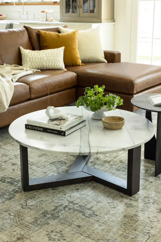 Polished and luxe, Griffith's white marble instantly elevates any space. Each table is unique with its own natural patterns and striations--and coasters are highly encouraged! 38"w. x 38"d. x 15"h. Shipping box: 41.5"w. x 41.5"d. x 7.25"h., 138lbs. Kailashpri white marble Assembly required Receives white glove delivery