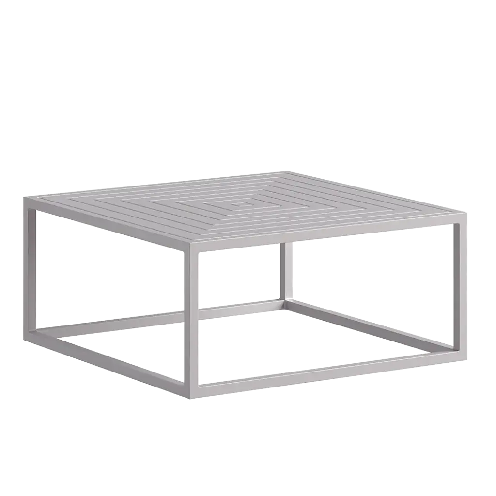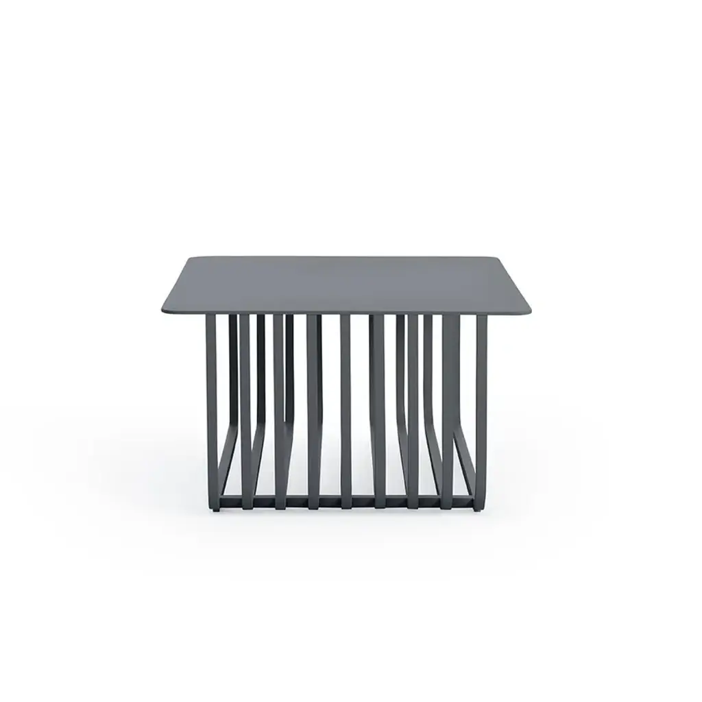 Grill is a square thermo lacquered aluminium coffee table by Diabla, design by MUT Design.GRILL transports minimalism and the essence of geometry to outdoor spaces, contrasting and merging its mathematical character with the inherent forms of nature. Conceived by Alberto Sánchez and Eduardo Villalón, founders of MUT Design, this collection stands out for its strong personality and aesthetics that bring it closer to the category of artistic object. GRILL invites us to imagine that Mondrian’s vision can be transformed into an element of daily use, to be enjoyed from a free and everyday perspective.GRILL introduces a linear language, pure and light visually and blurs the limits that separate the interior space from the exterior. These functional and decorative elements, of an architectural nature, have a structure of repetitive and fluid lines that form a framework inspired by traditional iron grills.This versatile collection, composed of a chair, stools (high and low) and a chair with armrests, permits an infinite number of possible combinations to create different spaces and ambiences. These are comfortable, simple pieces that are easy to move and stack, made entirely from welded aluminium and which stand out for their linear silhouettes that transmit lightness.The collection is presented in a wide range of colours: these are DIABLA’s standard colours.GRILL made its debut with its first prototypes in the “A la fresca” installation designed by the same designers for the “Das Haus” project at this year’s Imm Cologne fair. The award-winning Valencian studio is a regular collaborator of Gandia Blasco Group brands.Colours: White, pink, red, grey, anthracite, sand, bronze.