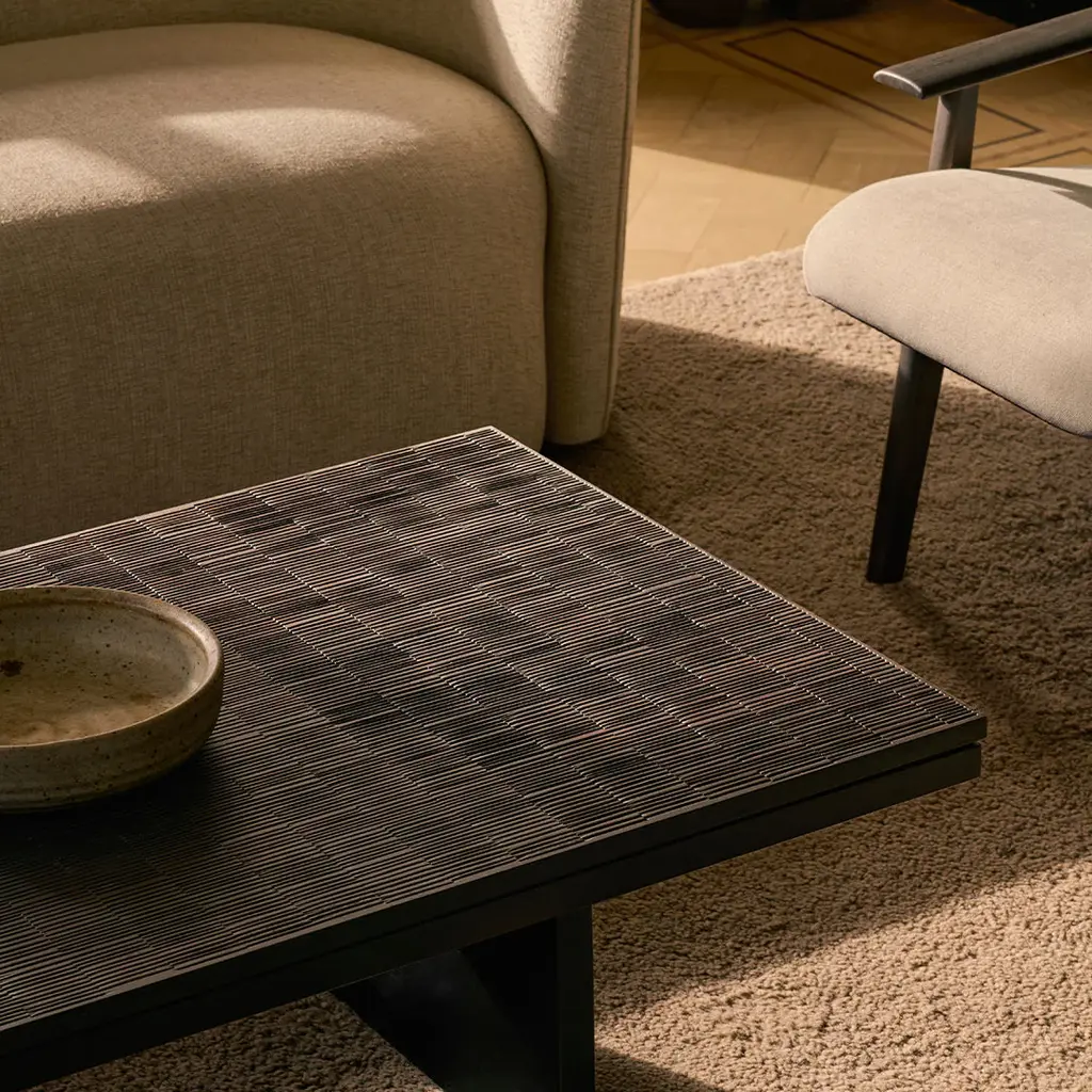 The Grooves coffee table brings a soulful element to a room. Every single line is hand carved, making each piece truly unique. Small imperfections are part of the story; even more so, they enhance Grooves' character. The result is a slightly different surface every time, each with its own rhythm and dynamics. The coffee table acts as an understated focal point in a living room or lounge setting.