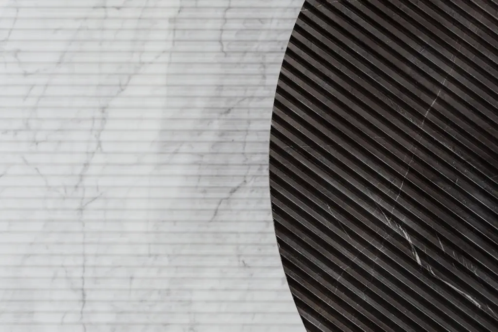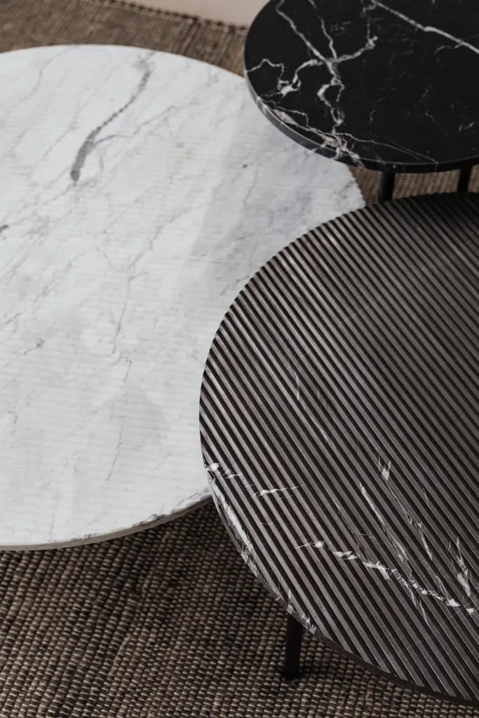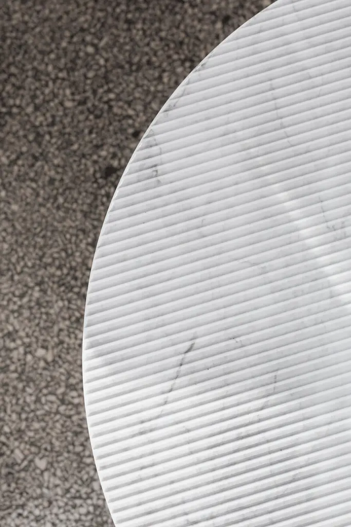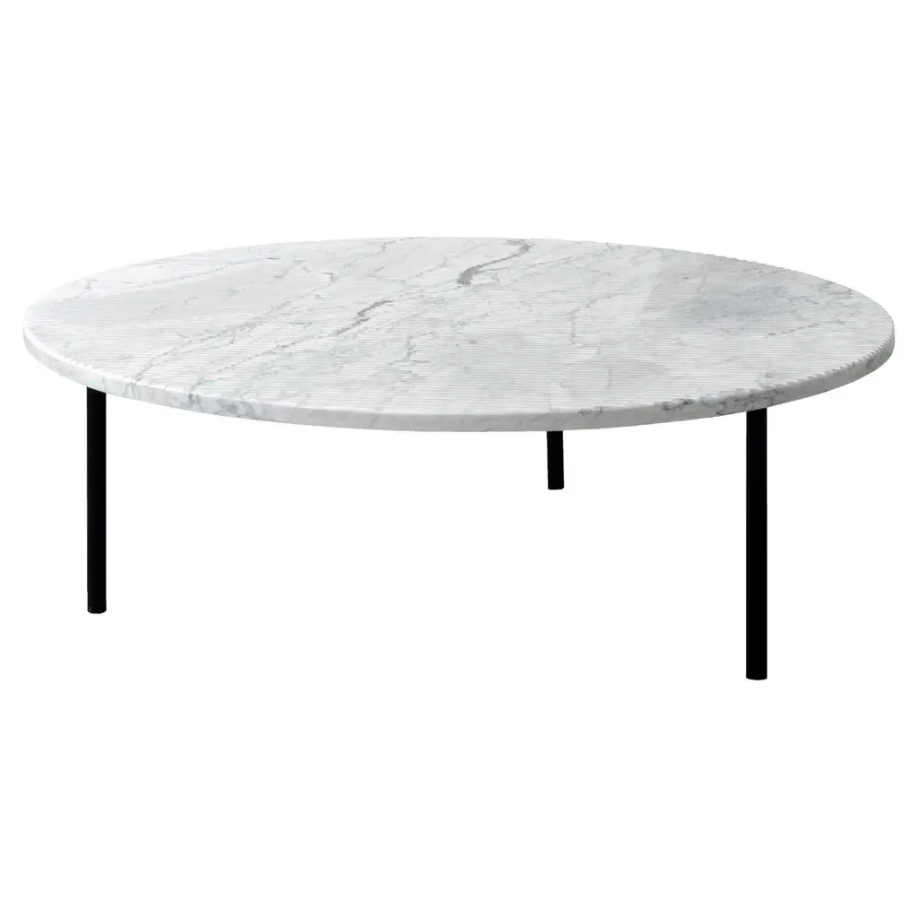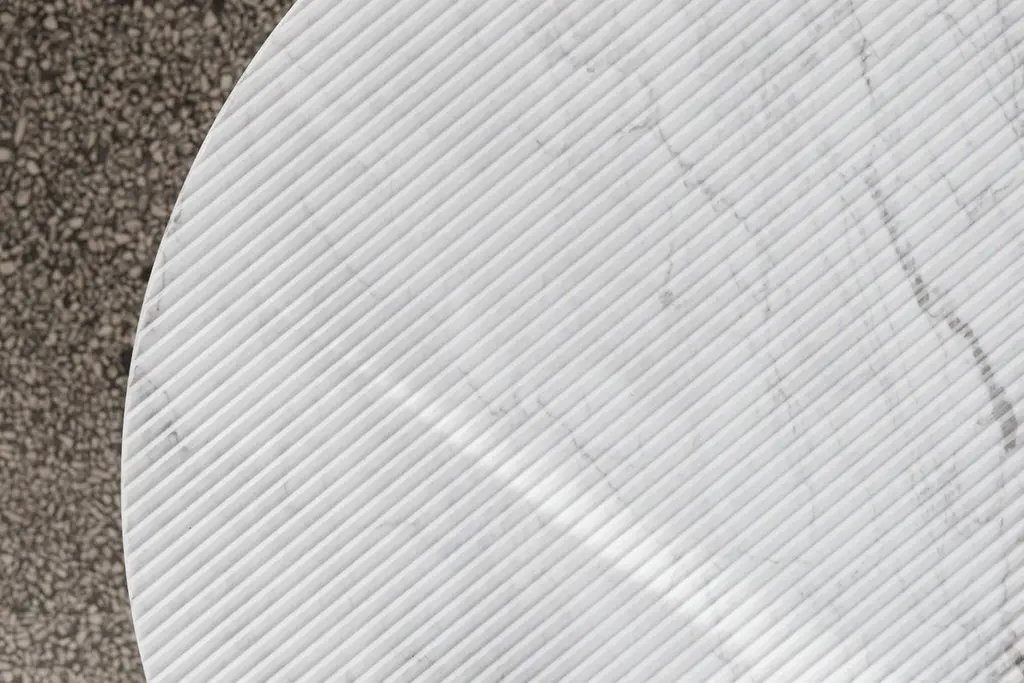 Gruff L Carrara Coffee Table by Un’commonDesigned by Małgorzata Korycka.Dimensions: Ø 90 x H 30 cm.Materials: Carrara marble.Available in different stone and finish options: Carrara, grooved Carrara, grooved Pietra Gray, and brushed Nero Marquina. Available in three different size options. Please contact us.The GRUFF L coffee table is the largest of the GRUFF tables. It can be used as an individual piece of furniture or combined with GRUFF S or M tables. The tables of this line are offered with four, well-matched finishes.Our Polish workshop designs and hand-makes furniture from marble and steel. Our furniture should not only be well-designed – it should be a feast for the senses. Nothing can produce this effect quite as good as marble.It is a beautiful, refined, natural material used for centuries in architecture, art, and everyday life. There are many different stone quarries, offering different types and colors of marble. However, because it is a natural material formed in a very complex process, it is virtually impossible to extract two identical pieces of stone. In our opinion, in a world ruled by plastic and mass production, this thrill of surprise is a bit of genuine luxury, reserved only for natural materials and their enthusiasts.Thanks to the physical properties of stone and precise workmanship, Un’common furniture is built to last. Over time, a natural patina may form on the surface, adding extra charm to your beautiful and refined furniture, which – if treated well – will reward you every day. Nothing can beat the taste of coffee when you drink it at a marble table.
