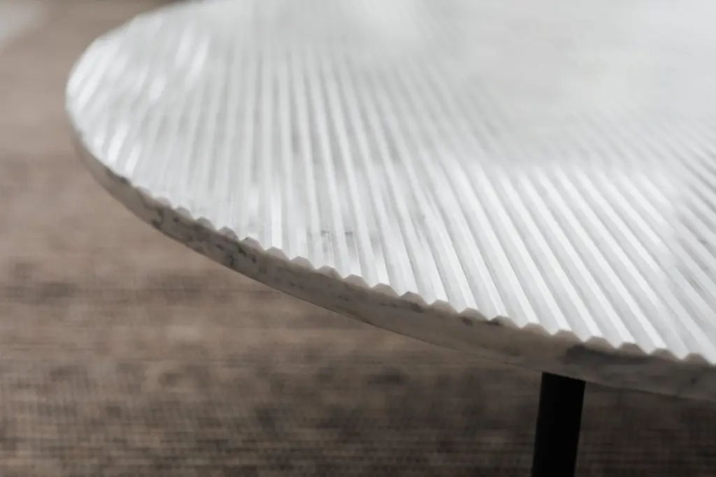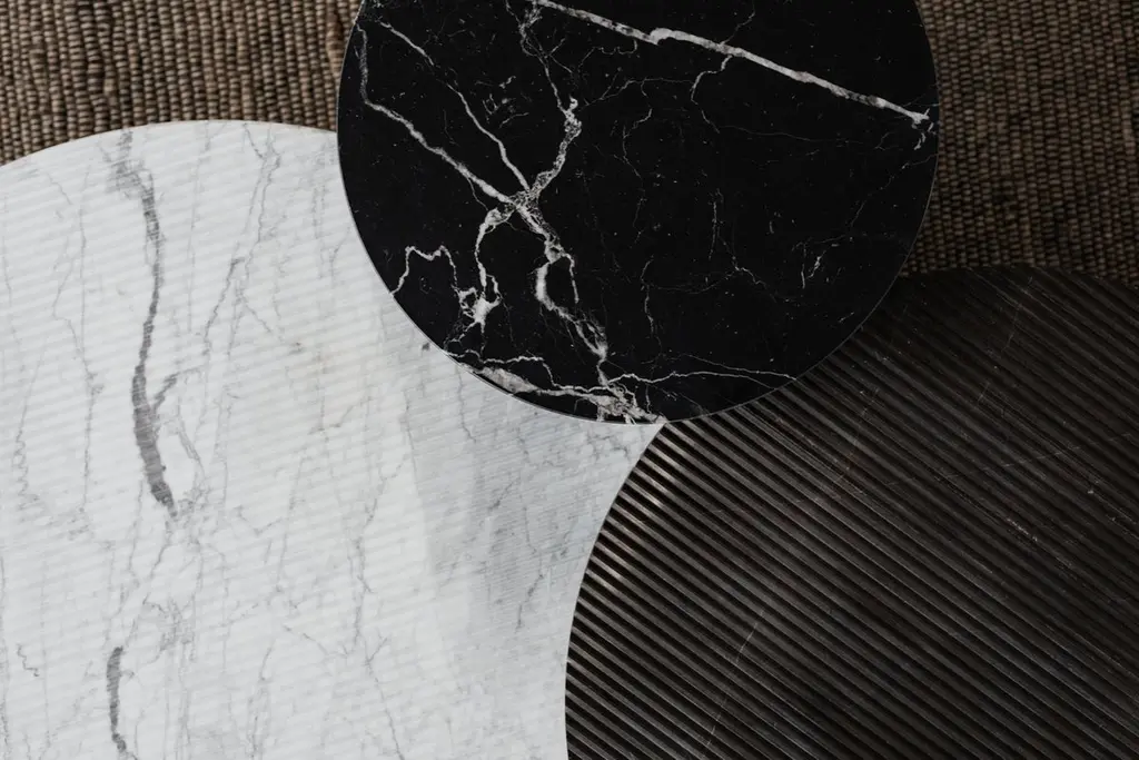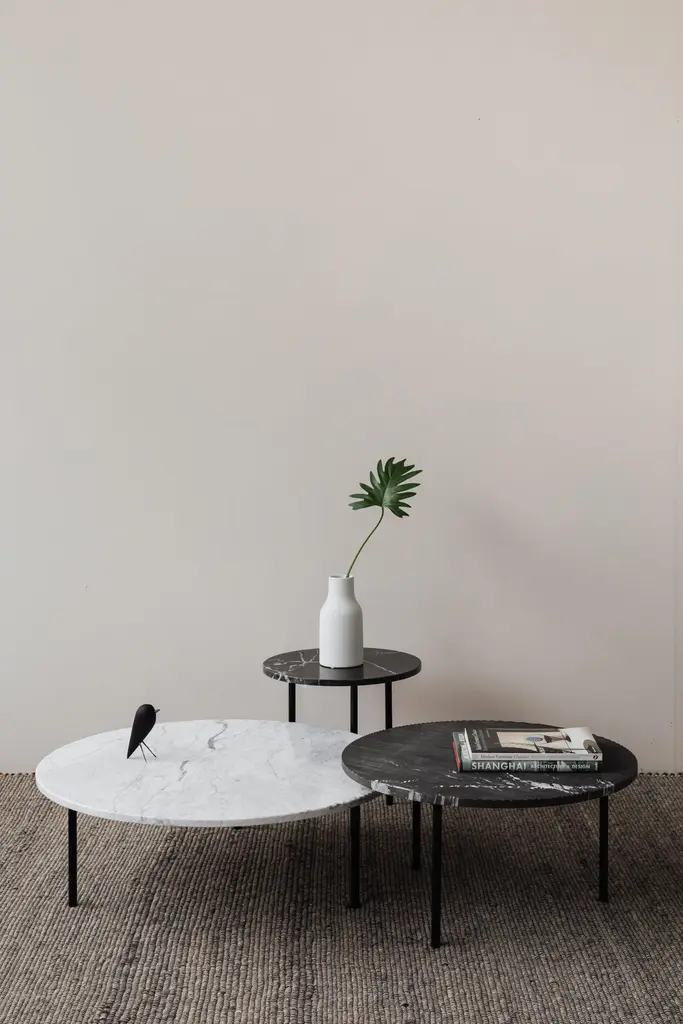 Gruff L Nero Marquina Coffee Table by Un’commonDesigned by Małgorzata Korycka.Dimensions: Ø 90 x H 30 cm.Materials: Brushed Nero Marquina marble.Available in different stone and finish options: Carrara, grooved Carrara, grooved Pietra Gray, and brushed Nero Marquina. Available in three different size options. Please contact us.The GRUFF L coffee table is the largest of the GRUFF tables. It can be used as an individual piece of furniture or combined with GRUFF S or M tables. The tables of this line are offered with four, well-matched finishes.Our Polish workshop designs and hand-makes furniture from marble and steel. Our furniture should not only be well-designed – it should be a feast for the senses. Nothing can produce this effect quite as good as marble.It is a beautiful, refined, natural material used for centuries in architecture, art, and everyday life. There are many different stone quarries, offering different types and colors of marble. However, because it is a natural material formed in a very complex process, it is virtually impossible to extract two identical pieces of stone. In our opinion, in a world ruled by plastic and mass production, this thrill of surprise is a bit of genuine luxury, reserved only for natural materials and their enthusiasts.Thanks to the physical properties of stone and precise workmanship, Un’common furniture is built to last. Over time, a natural patina may form on the surface, adding extra charm to your beautiful and refined furniture, which – if treated well – will reward you every day. Nothing can beat the taste of coffee when you drink it at a marble table.