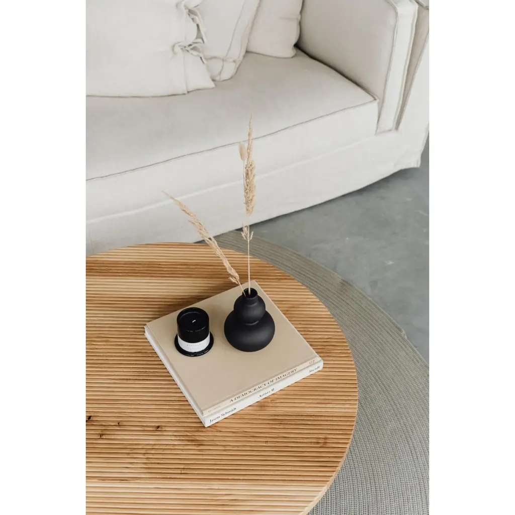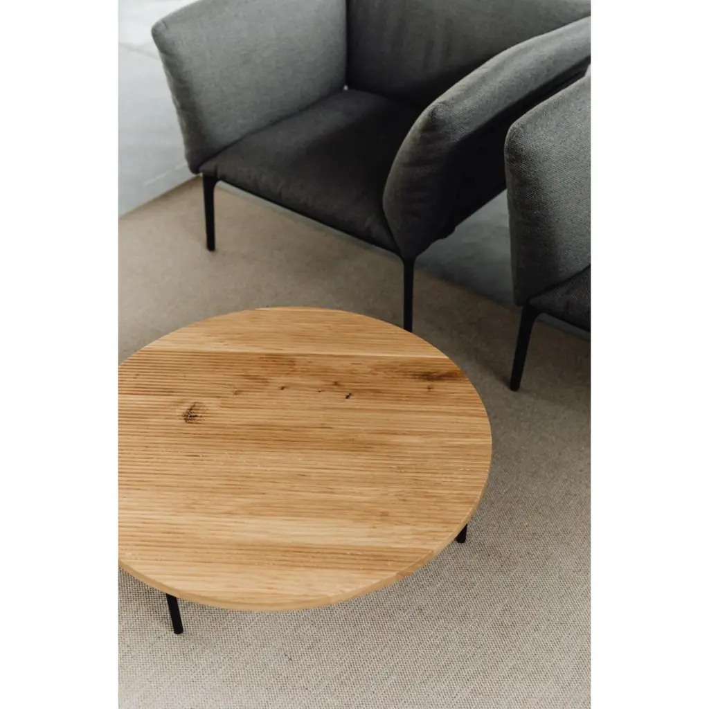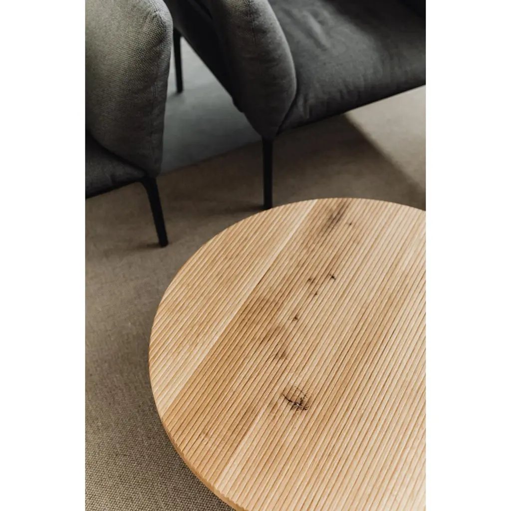 Gruff L Oak Coffee Table by Un’commonDesigned by Małgorzata Korycka.Dimensions: Ø 90 x H 30 cm.Materials: Oak.Available in three different size options. Please contact us.The GRUFF OAK coffee table has an oak top with delicate milled stripes to form a unique, sensual texture that is surprising to the touch and convenient in use. Perhaps you want to combine it with other GRUFF tables to create a beautiful set?Our Polish workshop designs and hand-makes furniture from marble and steel. Our furniture should not only be well-designed – it should be a feast for the senses. Nothing can produce this effect quite as good as marble.It is a beautiful, refined, natural material used for centuries in architecture, art, and everyday life. There are many different stone quarries, offering different types and colors of marble. However, because it is a natural material formed in a very complex process, it is virtually impossible to extract two identical pieces of stone. In our opinion, in a world ruled by plastic and mass production, this thrill of surprise is a bit of genuine luxury, reserved only for natural materials and their enthusiasts.Thanks to the physical properties of stone and precise workmanship, Un’common furniture is built to last. Over time, a natural patina may form on the surface, adding extra charm to your beautiful and refined furniture, which – if treated well – will reward you every day. Nothing can beat the taste of coffee when you drink it at a marble table.