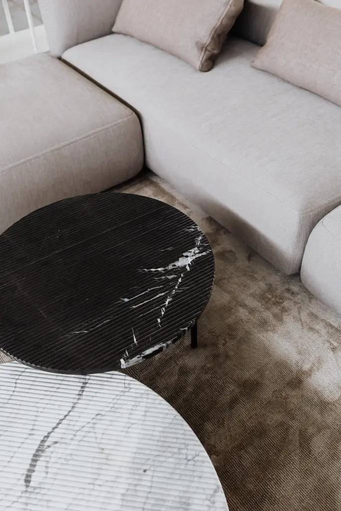Gruff M Grooved Pietra Gray Coffee Table by Un’commonDesigned by Małgorzata Korycka.Dimensions: Ø 70 x H 35 cm.Materials: Grooved Pietra Gray marble.Available in different stone and finish options: Carrara, grooved Carrara, grooved Pietra Gray, and brushed Nero Marquina. Available in three different size options. Please contact us.GRUFF M is a beautiful coffee table. Tables of the GRUFF series have unique marble tops available in the following four versions:• Carrara white polished top,• Carrara white grooved top with delicate stripes,• Pietra Gray graphite grooved top with delicate stripes,• Nero Marquina black wire-brushed top.Our Polish workshop designs and hand-makes furniture from marble and steel. Our furniture should not only be well-designed – it should be a feast for the senses. Nothing can produce this effect quite as good as marble.It is a beautiful, refined, natural material used for centuries in architecture, art, and everyday life. There are many different stone quarries, offering different types and colors of marble. However, because it is a natural material formed in a very complex process, it is virtually impossible to extract two identical pieces of stone. In our opinion, in a world ruled by plastic and mass production, this thrill of surprise is a bit of genuine luxury, reserved only for natural materials and their enthusiasts.Thanks to the physical properties of stone and precise workmanship, Un’common furniture is built to last. Over time, a natural patina may form on the surface, adding extra charm to your beautiful and refined furniture, which – if treated well – will reward you every day. Nothing can beat the taste of coffee when you drink it at a marble table.