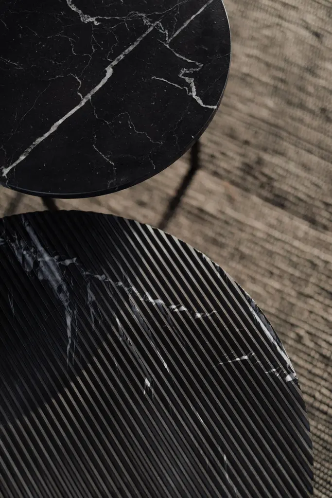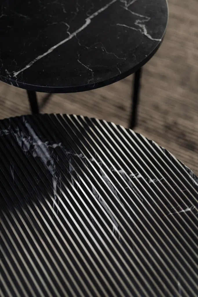 Gruff M Nero Marquina Coffee Table by Un’commonDesigned by Małgorzata Korycka.Dimensions: Ø 70 x H 35 cm.Materials: Brushed Nero Marquina marble.Available in different stone and finish options: Carrara, grooved Carrara, grooved Pietra Gray, and brushed Nero Marquina. Available in three different size options. Please contact us.GRUFF M is a beautiful coffee table. Tables of the GRUFF series have unique marble tops available in the following four versions:• Carrara white polished top,• Carrara white grooved top with delicate stripes,• Pietra Gray graphite grooved top with delicate stripes,• Nero Marquina black wire-brushed top.Our Polish workshop designs and hand-makes furniture from marble and steel. Our furniture should not only be well-designed – it should be a feast for the senses. Nothing can produce this effect quite as good as marble.It is a beautiful, refined, natural material used for centuries in architecture, art, and everyday life. There are many different stone quarries, offering different types and colors of marble. However, because it is a natural material formed in a very complex process, it is virtually impossible to extract two identical pieces of stone. In our opinion, in a world ruled by plastic and mass production, this thrill of surprise is a bit of genuine luxury, reserved only for natural materials and their enthusiasts.Thanks to the physical properties of stone and precise workmanship, Un’common furniture is built to last. Over time, a natural patina may form on the surface, adding extra charm to your beautiful and refined furniture, which – if treated well – will reward you every day. Nothing can beat the taste of coffee when you drink it at a marble table.